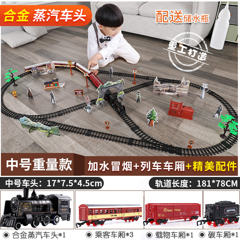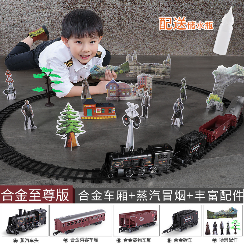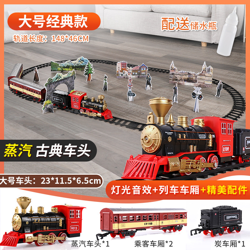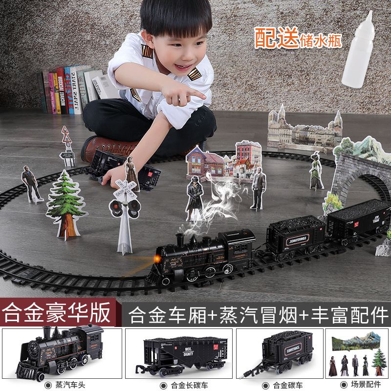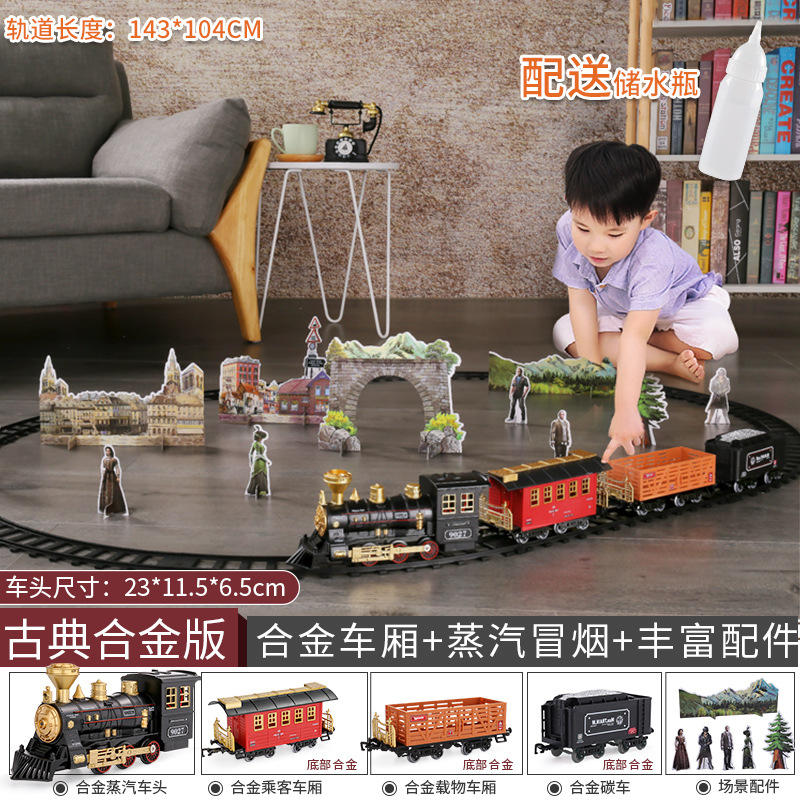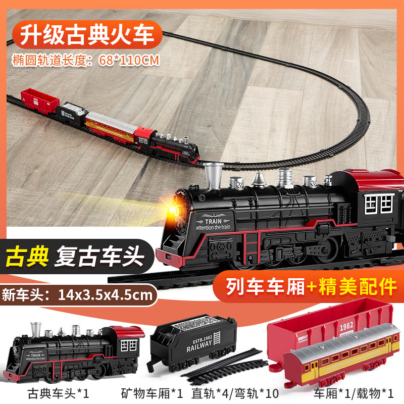 시뮬레이션 전기 트랙 클래식 모델 장난감 고속 열차 복고풍 증기 기관차 장난감 소년스토어 가기