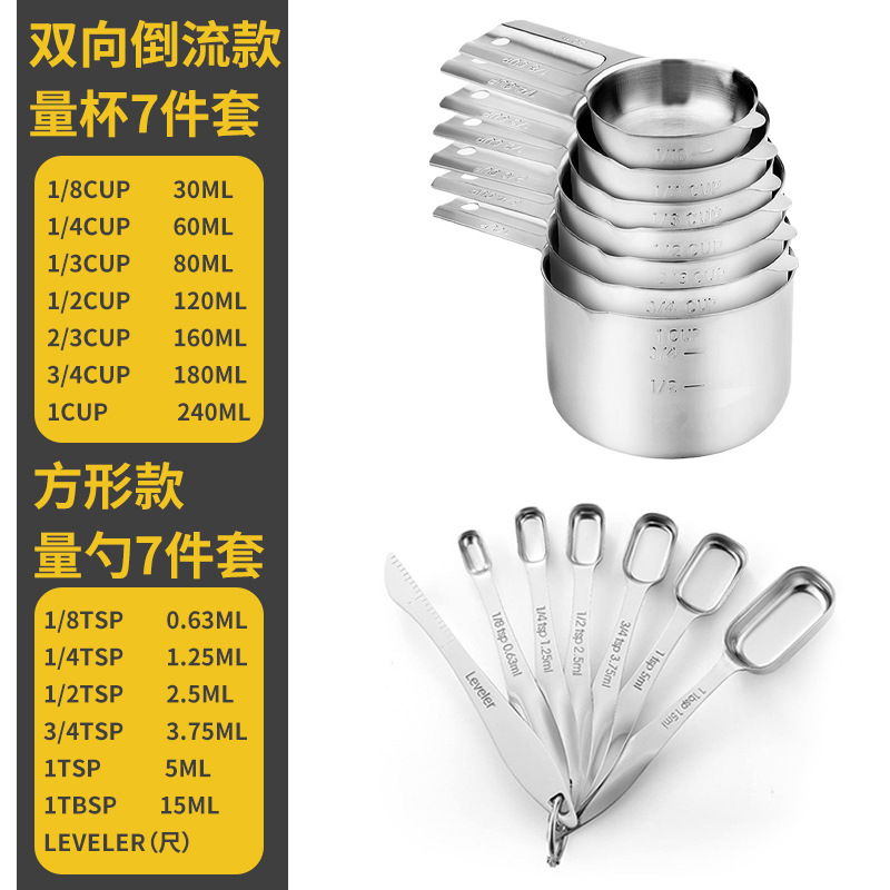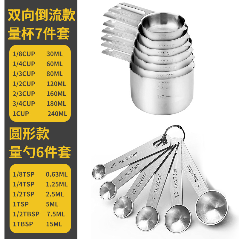 베이킹 304 스테인레스 스틸 측정 숟가락 측정 컵 13 조각 세트 스케일 요리 조미료 숟가락 측정 아마존스토어 가기