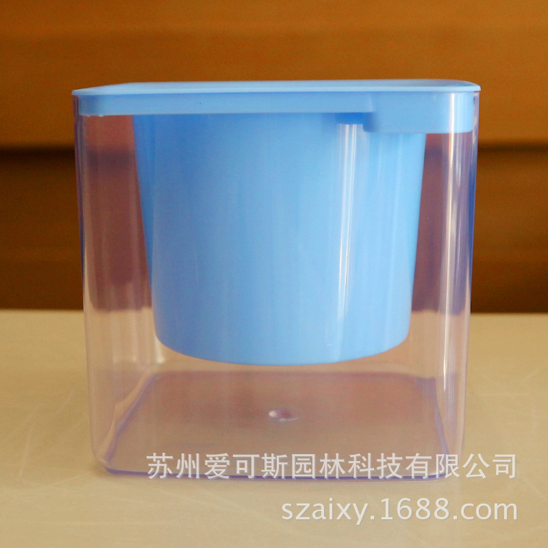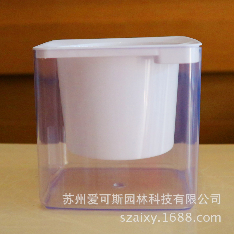 全透明方形花盆懒人自吸水花盆魔方透明储水花盆桌面水培花卉绿植