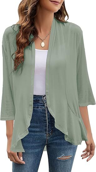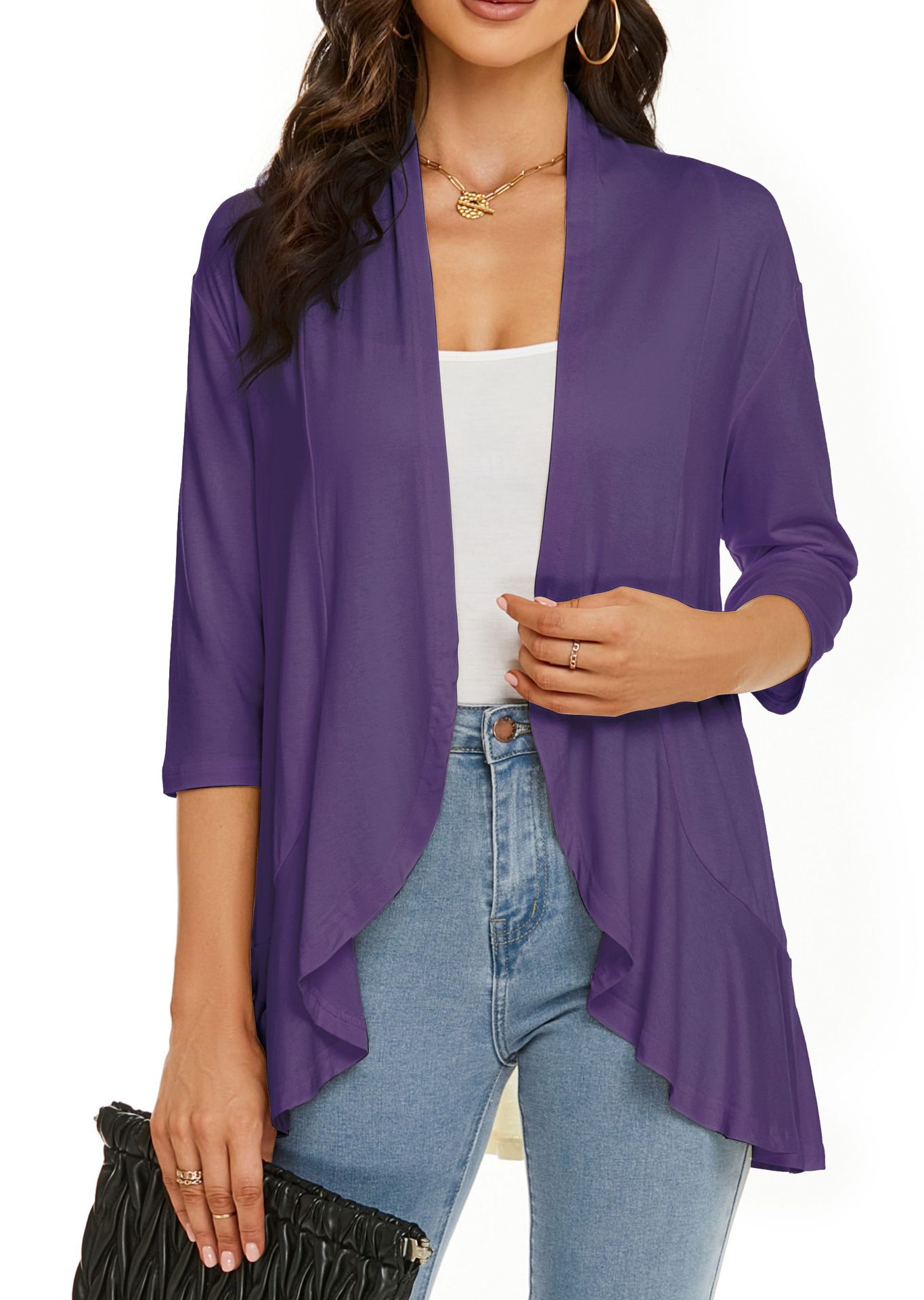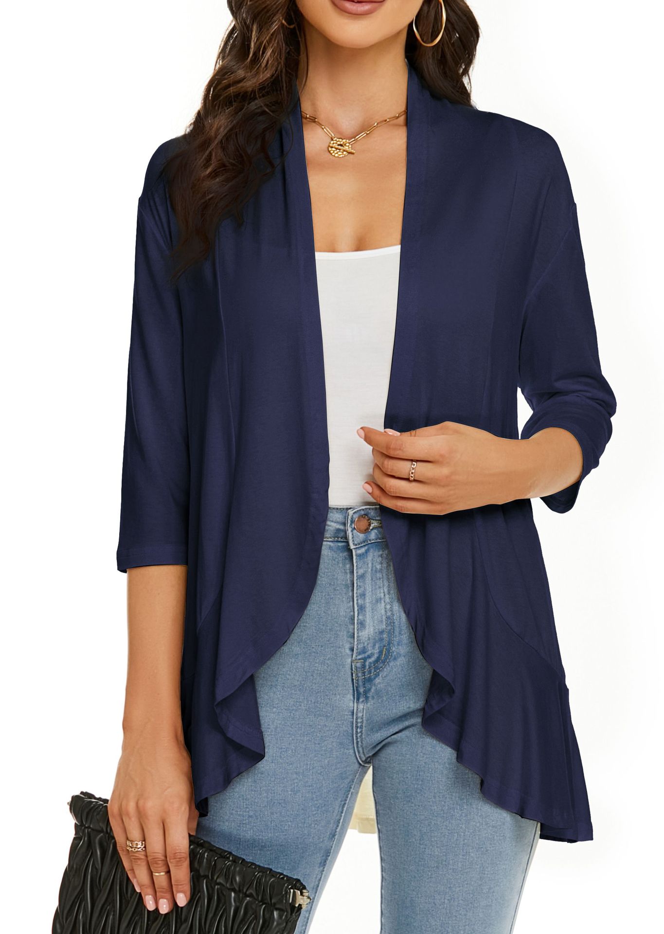 국경 간 유럽과 미국 여성 의류 아마존 독립 역 가을 새로운 단색 카디건 재킷 7 소매 러플 탑스토어 가기