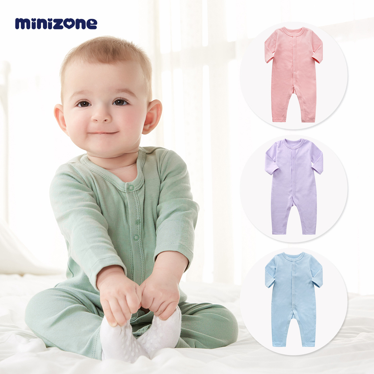Minizone 아기 점프 슈트 신생아 봄과 가을 등산 세트 오픈 긴 소매 다리 커버 아기 점프 슈트스토어 가기