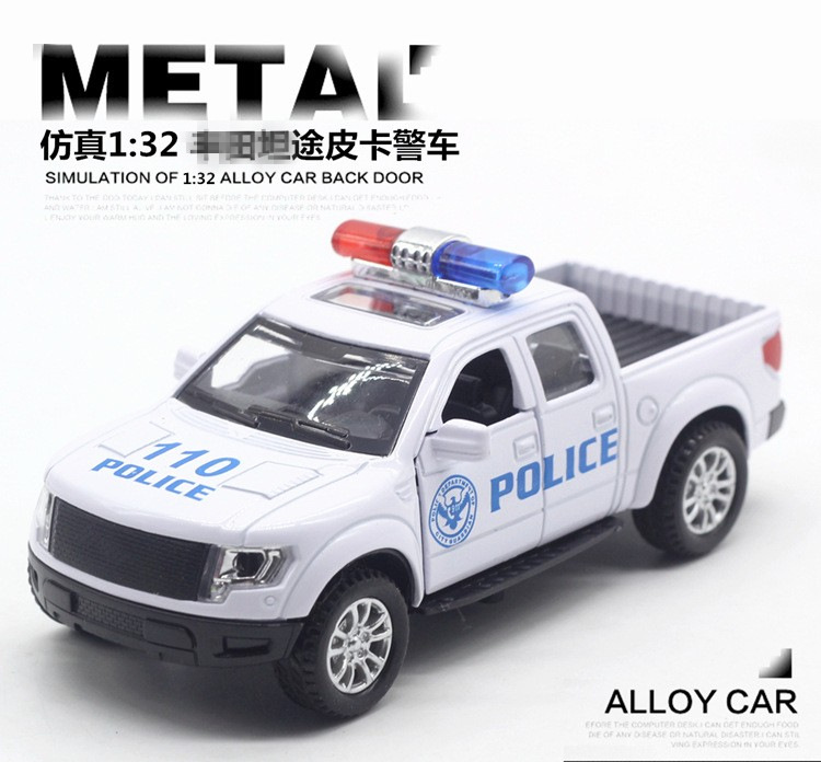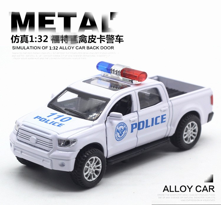 2款皮卡警车模型,尺寸是12.2m*5cm*5cm,盒子上是标1:32的