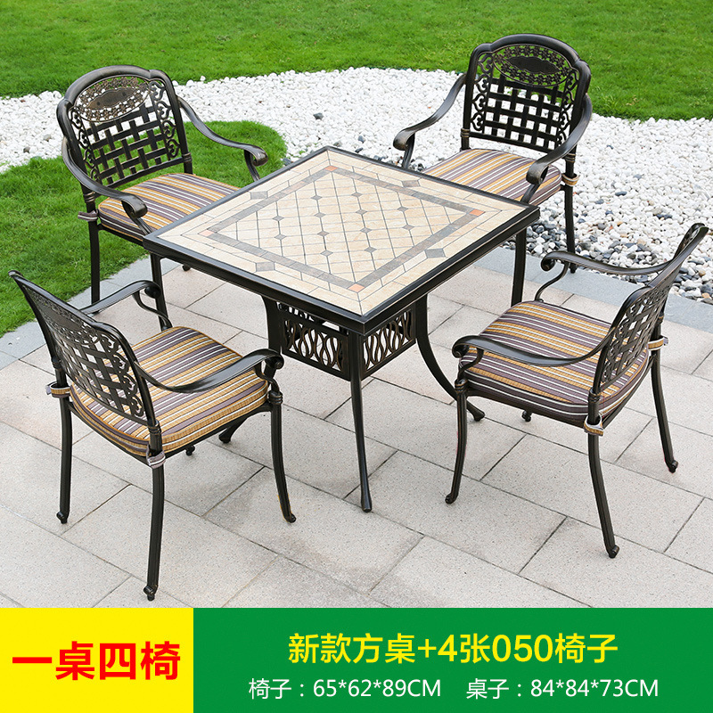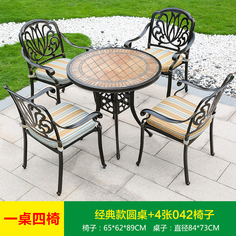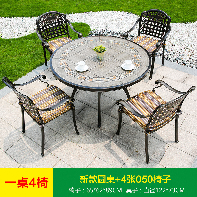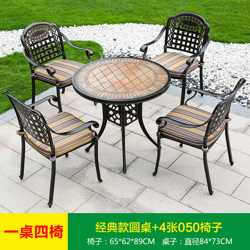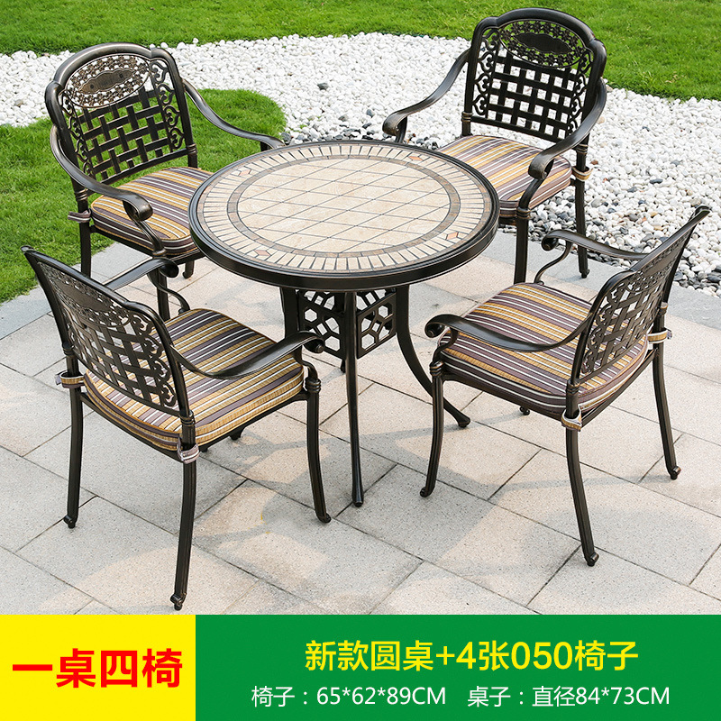 진구 야외 안뜰 정원 발코니 주조 알루미늄 테이블과 의자 조합 야외 유럽 철제 테이블과 의자 3 종 5 종 세트