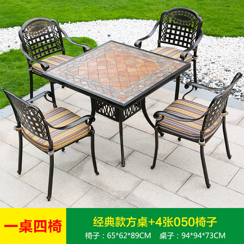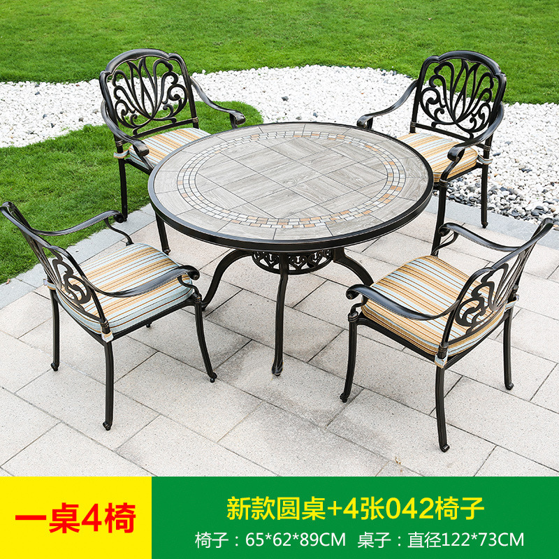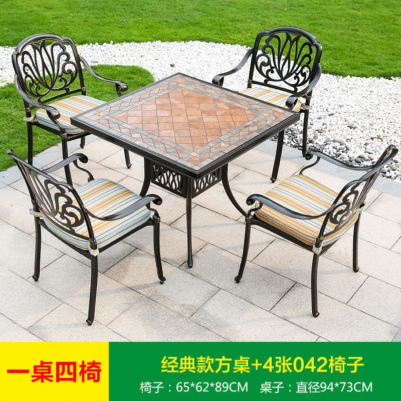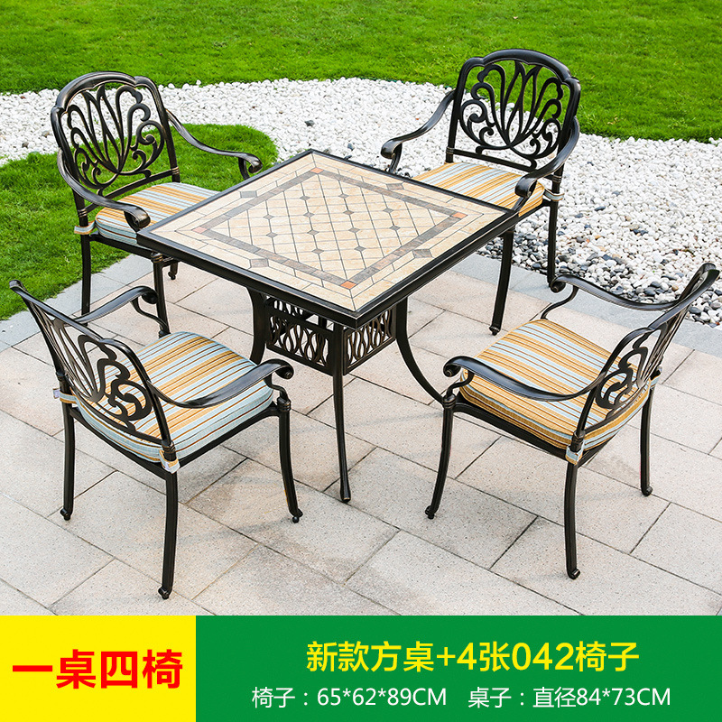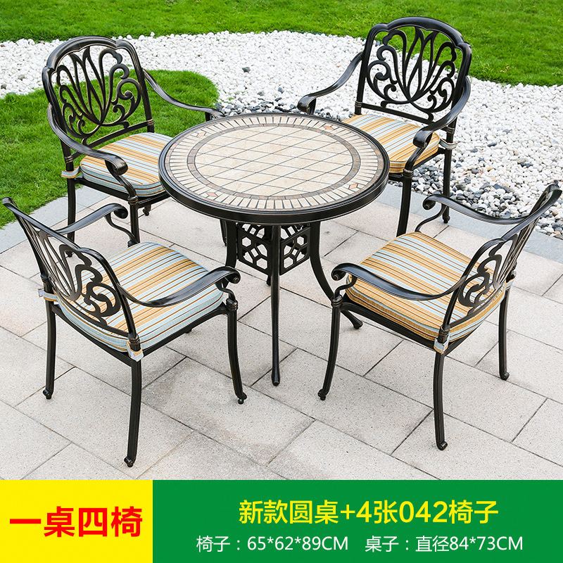 진구 야외 안뜰 정원 발코니 주조 알루미늄 테이블과 의자 조합 야외 유럽 철제 테이블과 의자 3 종 5 종 세트