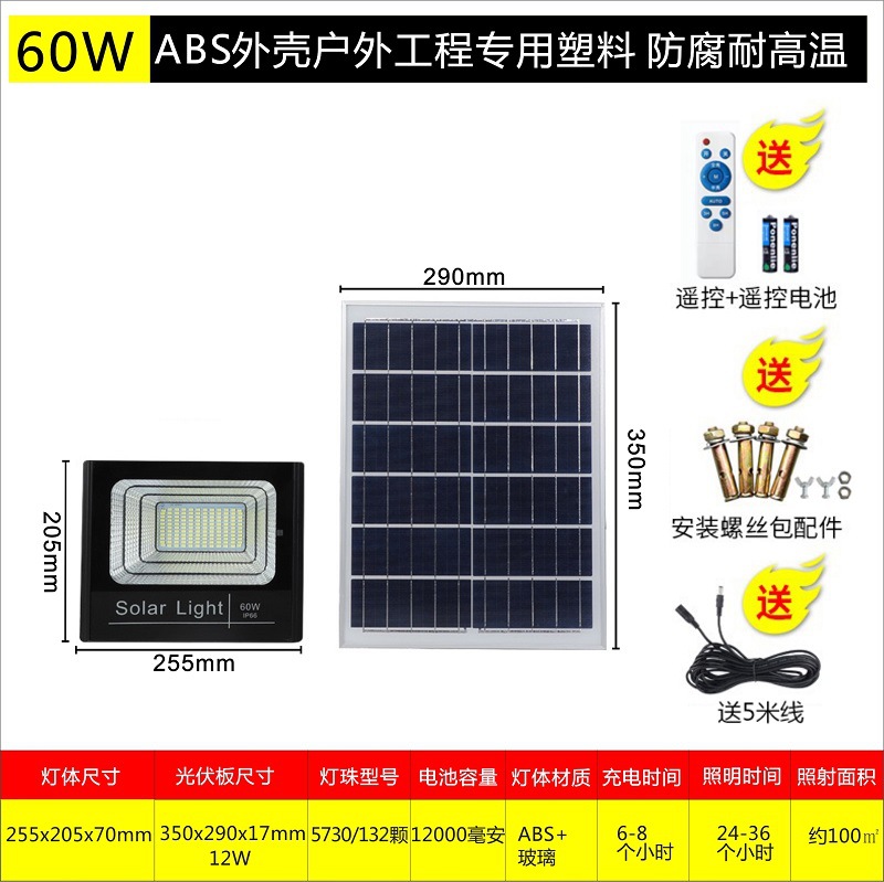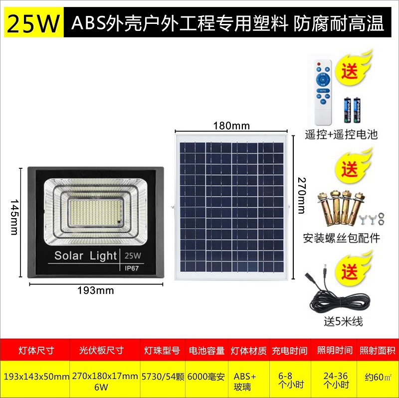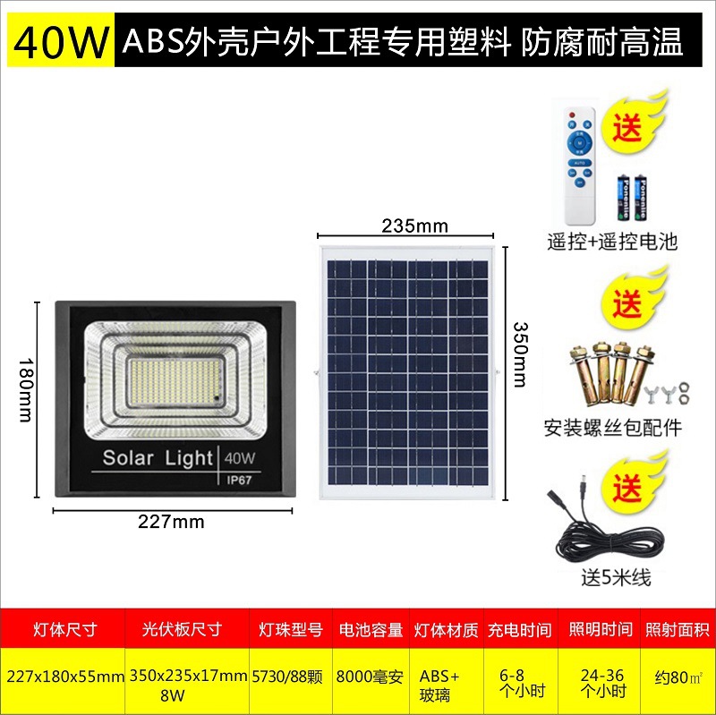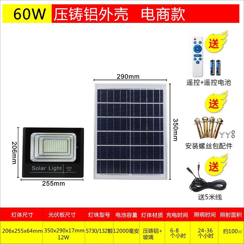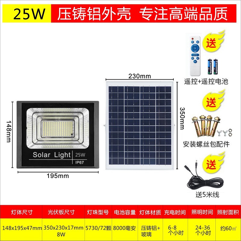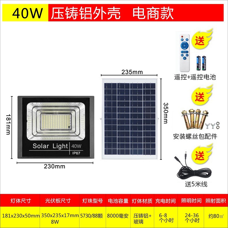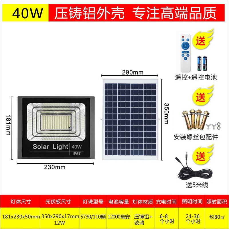 厂家太阳能投光灯 户外照明灯具 家用庭院灯led太阳能灯分体路灯
