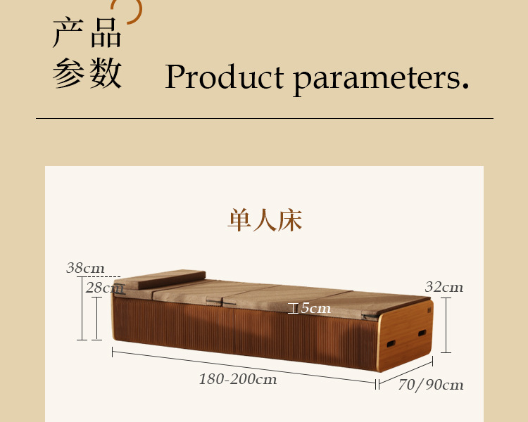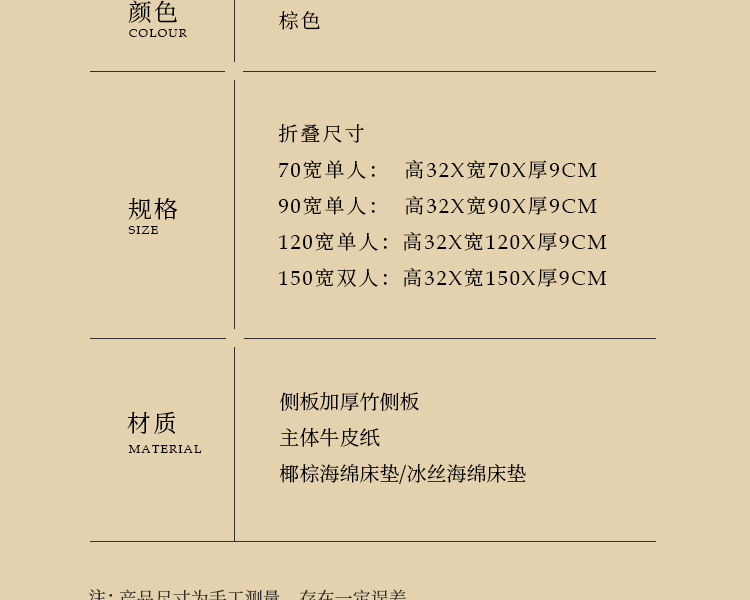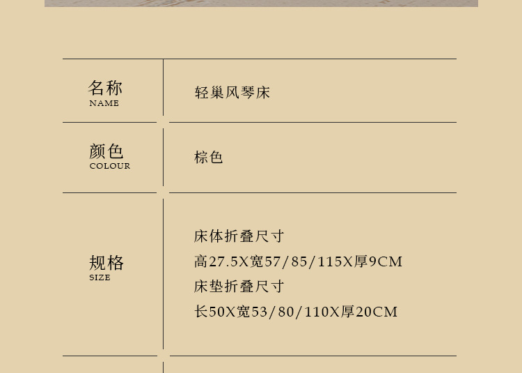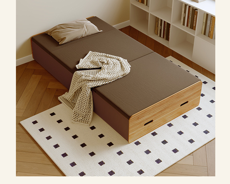 • 폭 70cm 다크 브라운 접이식 침대 + 다크 브라운 매트리스
