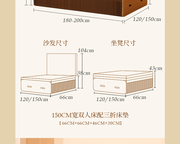 • 폭 150cm 다크 브라운 접이식 침대 + 다크 브라운 매트리스