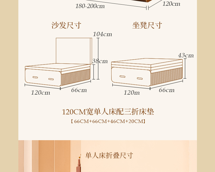 • 폭 120cm 다크 브라운 접이식 침대 + 다크 브라운 매트리스