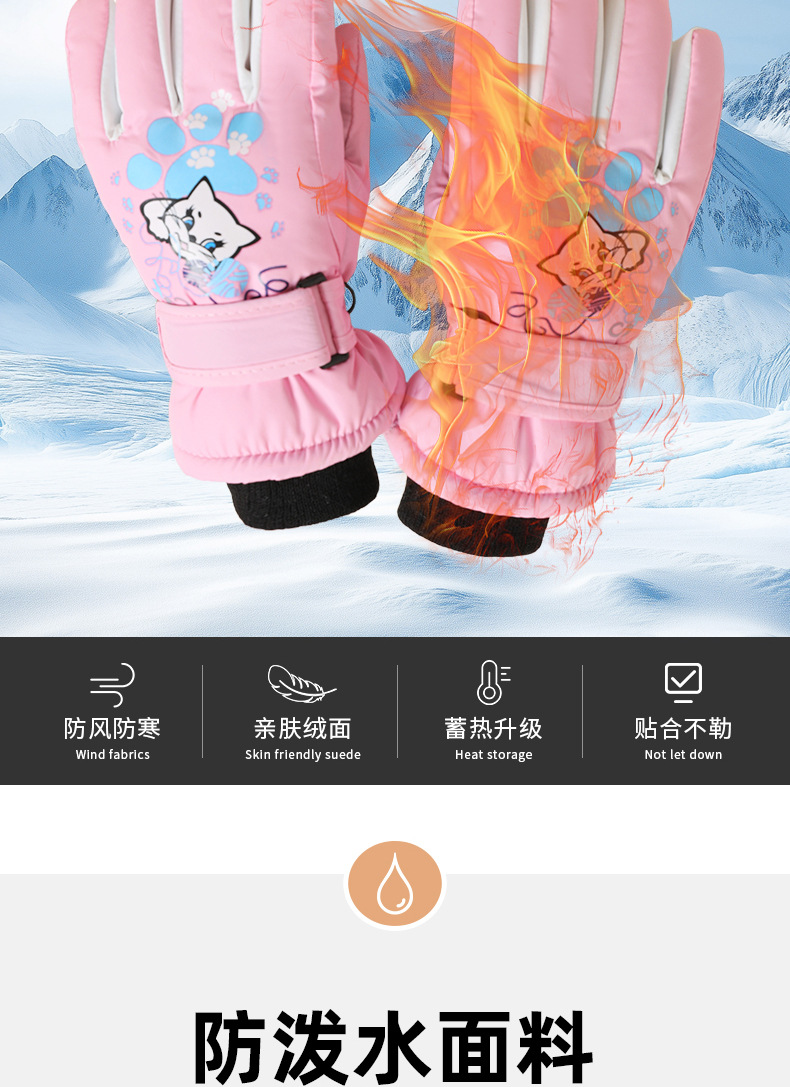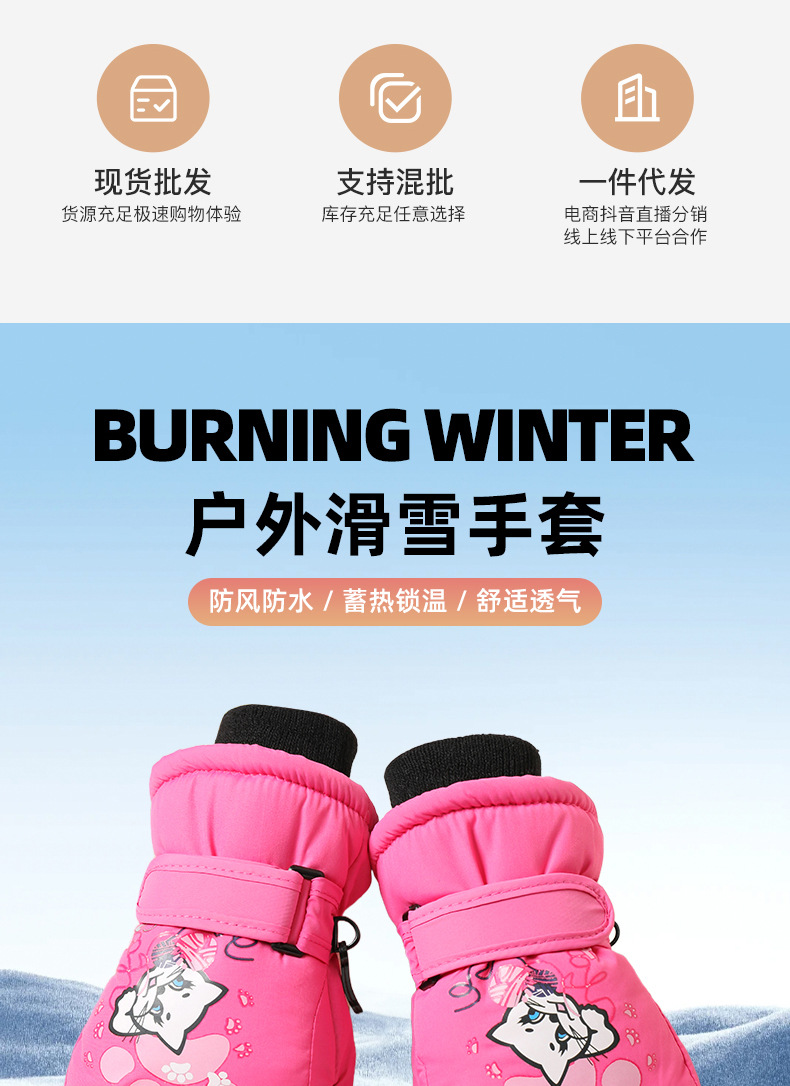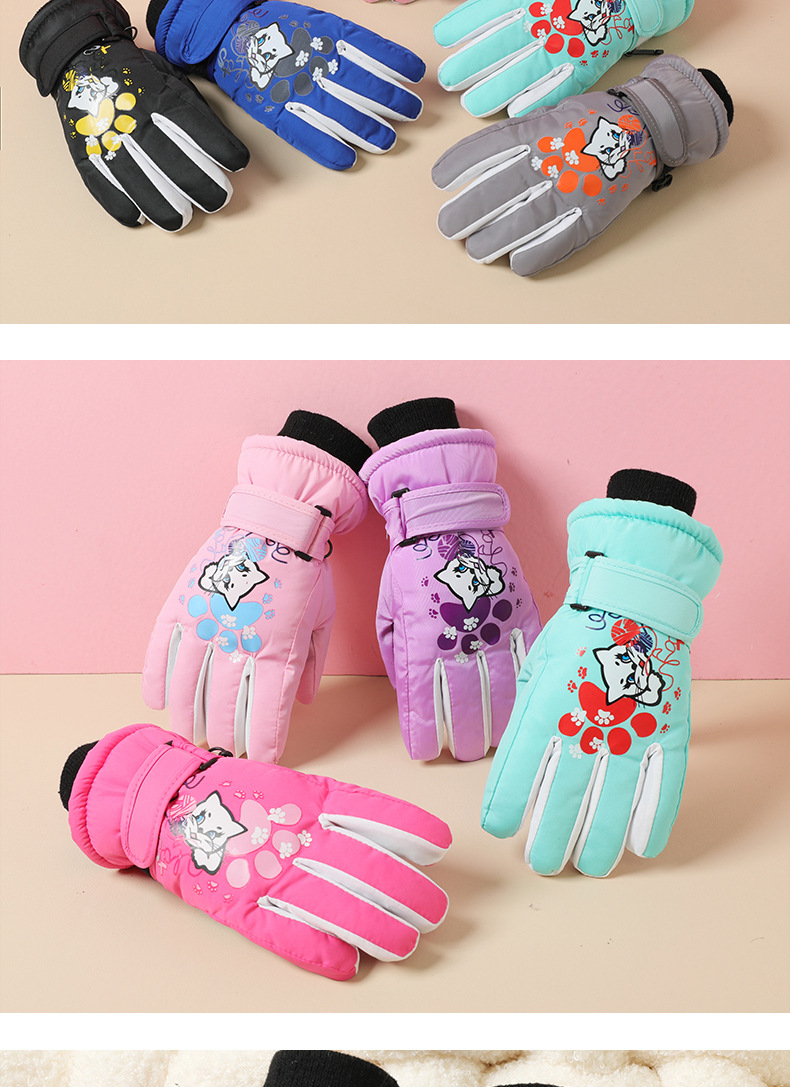 겨울 야외 어린이 스키 장갑 남성과 여성의 5-10 세 만화 크리스마스 방풍 방수 따뜻한 승마 장갑