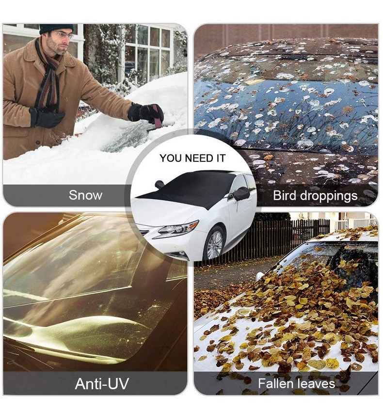 거울 커버가 있는 검정색 자동차 유리 커버, 자동차 앞유리 커버, 사계절용 방한 반차커버