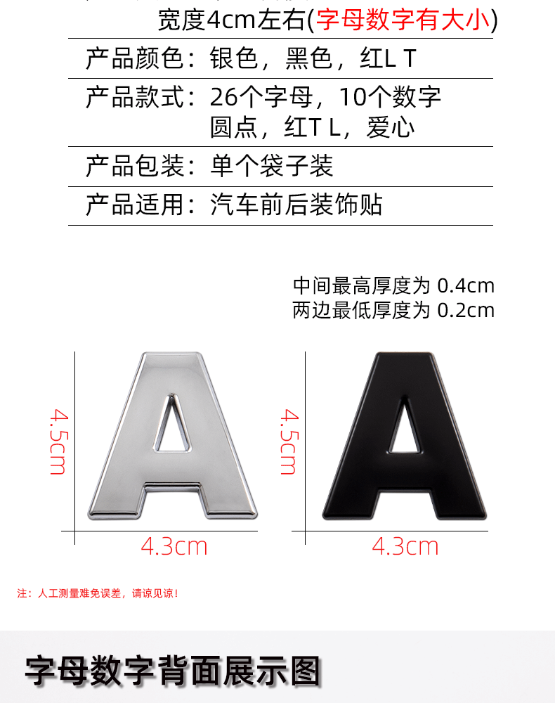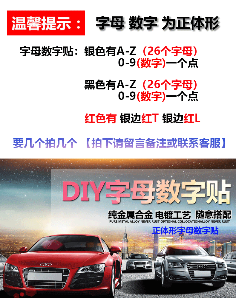 자동차 대형 영어 알파벳 성격 DIY 바디 조합 스티커 금속 3D 디지털 자동차 스티커 알파벳 스티커스토어 가기