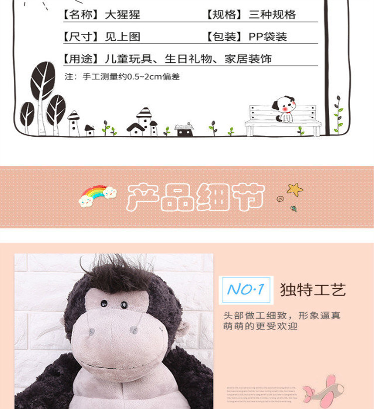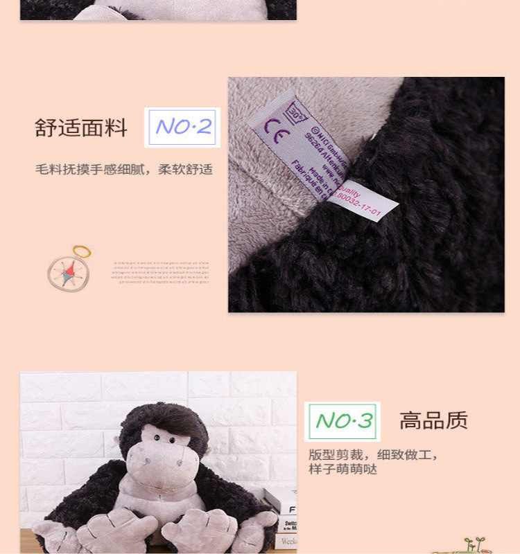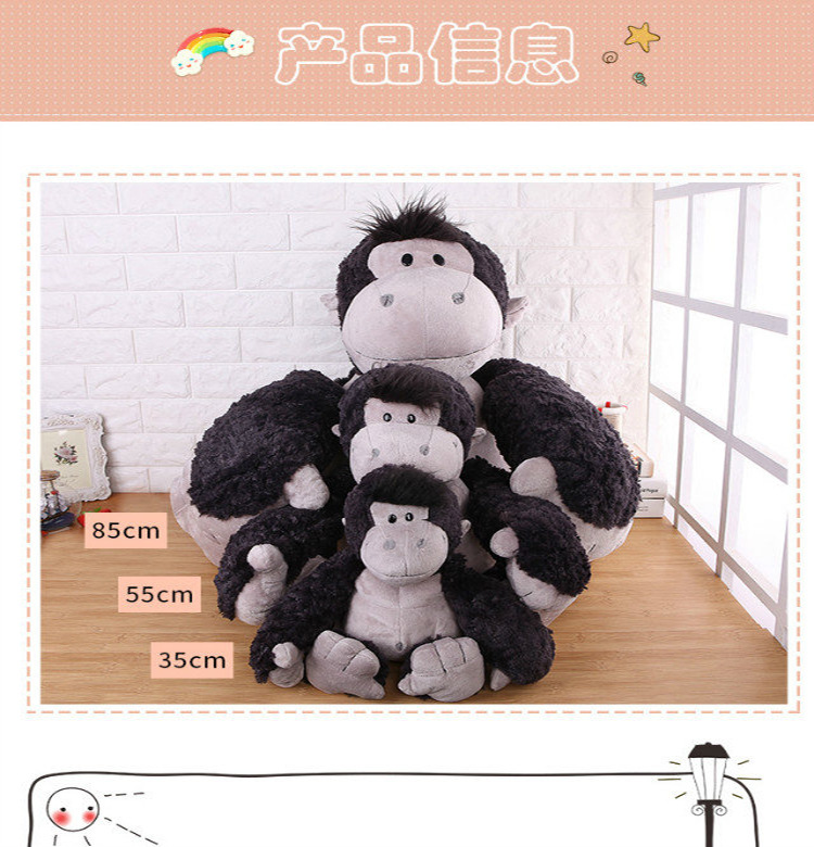 시뮬레이션 고릴라 인형 봉제 장난감 귀여운 블랙 고릴라 원숭이 창의적인 인형 대형 베개 해외 판매스토어 가기
