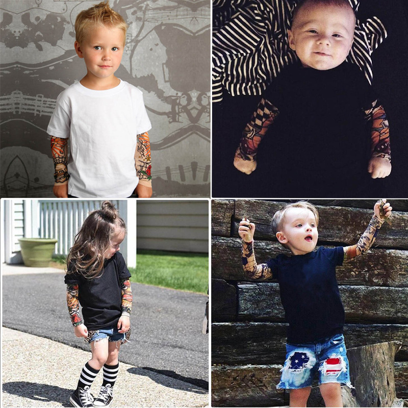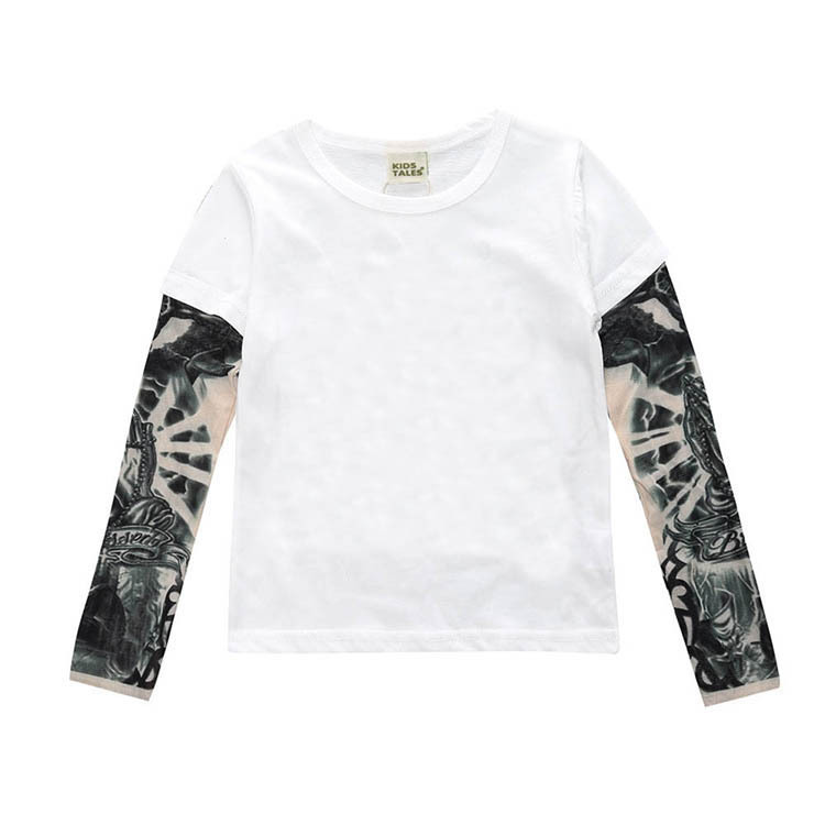 【款式】男童棉打底衫长袖T恤花臂纹身纯色儿童t恤宝宝假两件t恤