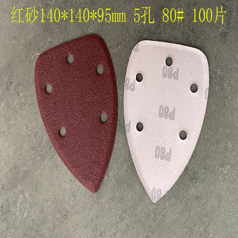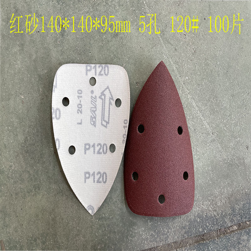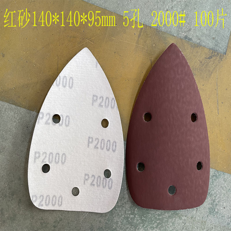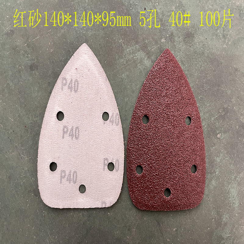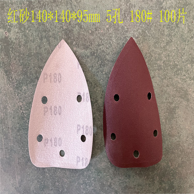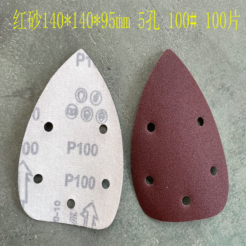 140*90mm5 구멍 특수형 백 벨벳 손바닥 모래 삼각형 복숭아 벨벳 빨간 사포 140*95m 크로스 보더