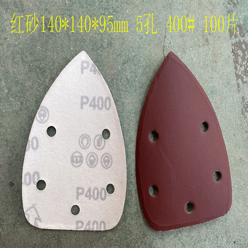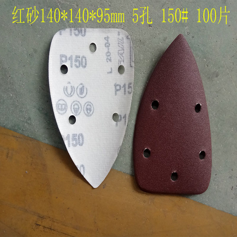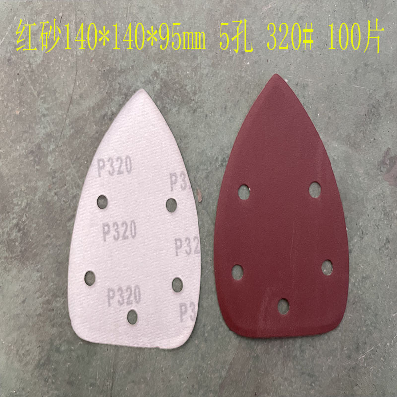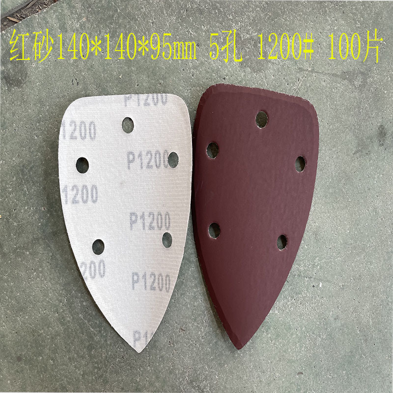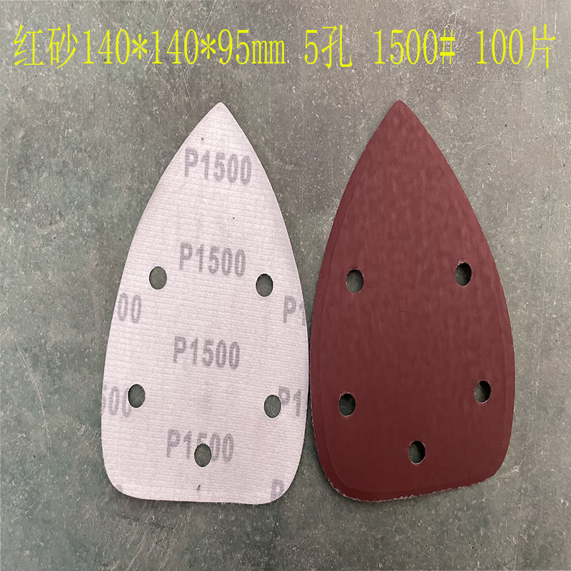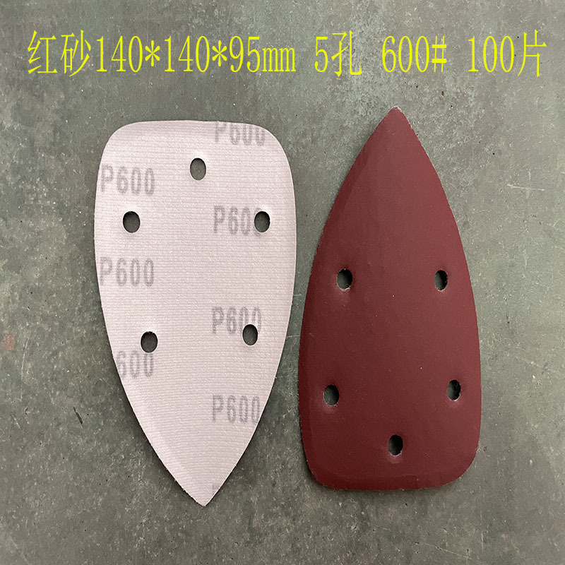 140*90mm5 구멍 특수형 백 벨벳 손바닥 모래 삼각형 복숭아 벨벳 빨간 사포 140*95m 크로스 보더
