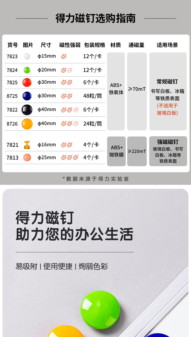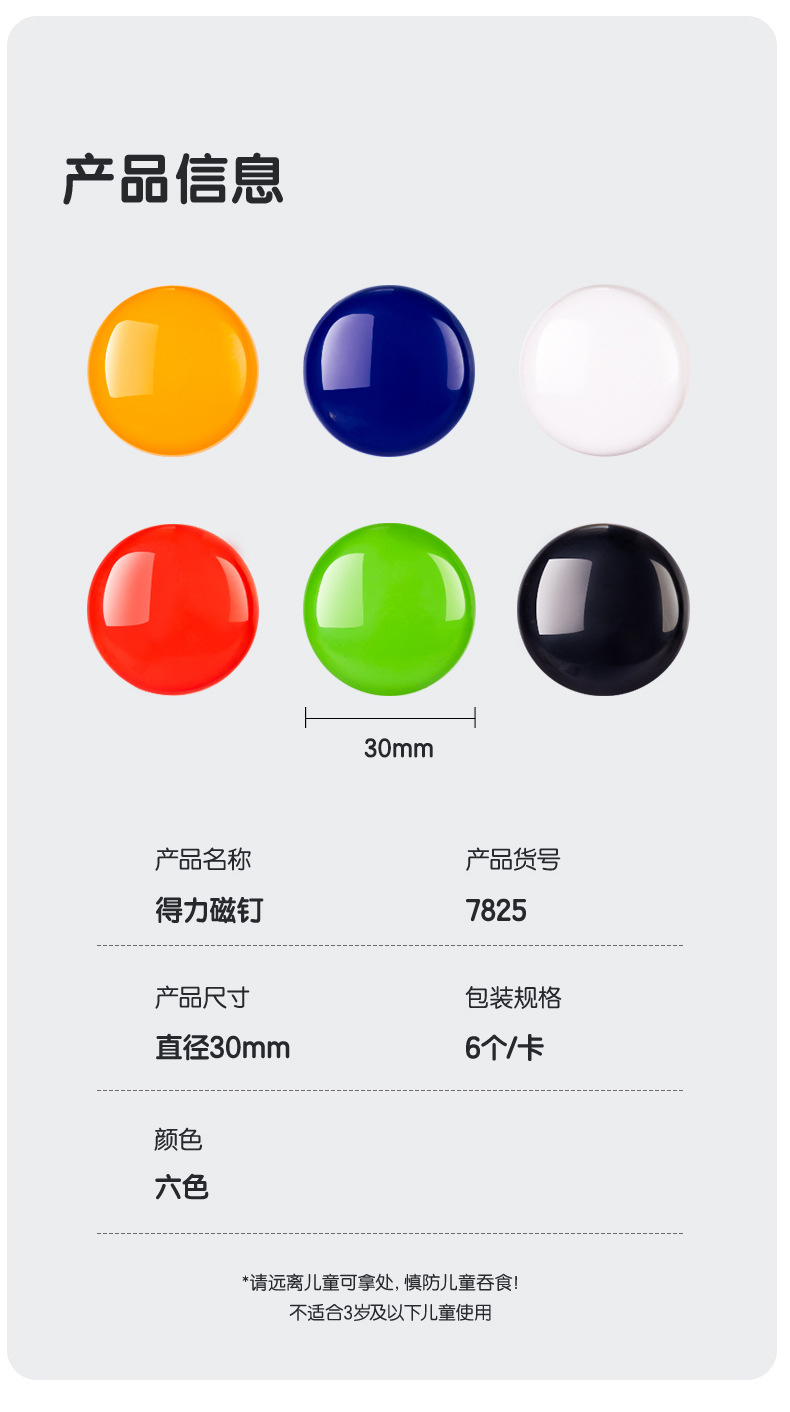 델리 7825 마그네틱 네일 30mm 마그네틱 과립 컬러 어트랙터 마그네틱 스틱 마그네틱 버클 멀티 사양 카드 배럴 화이트 보드 마그네틱 네일