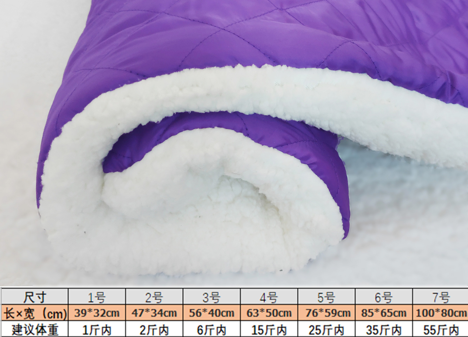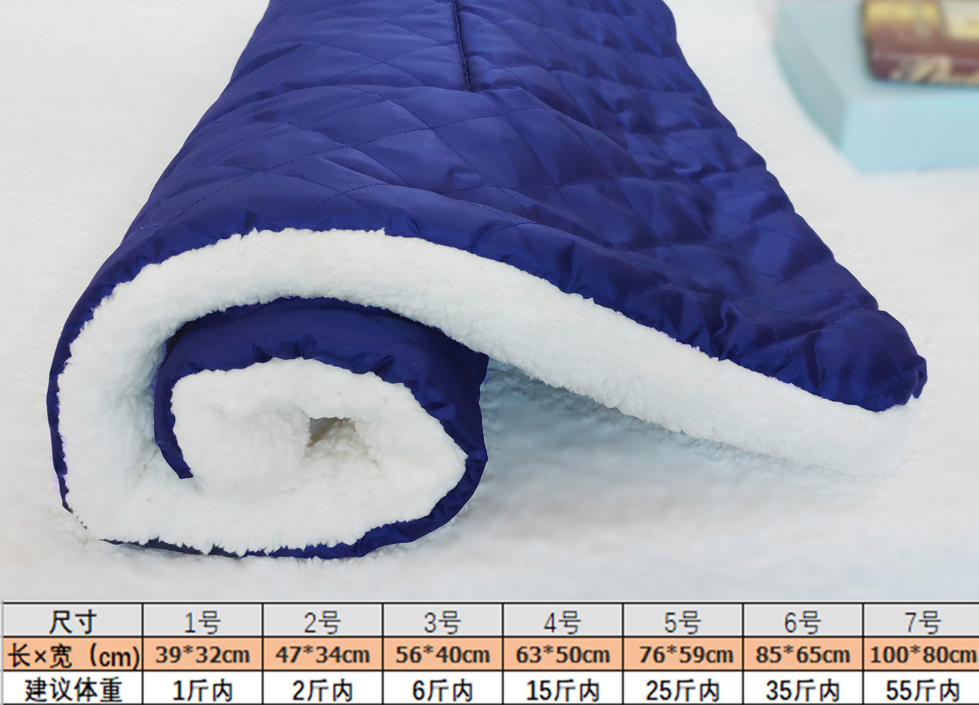 产品特点:1.此款宠物垫清洗方便,可机洗可手洗,四季都可适用,夏天在空调的环境下爱宠更需要垫子。2.成品垫填充物为仿丝棉,平整很有型3.大尺寸,4.两面可用,光滑一面有防潮防滑作用,毛绒一面柔软亲肤