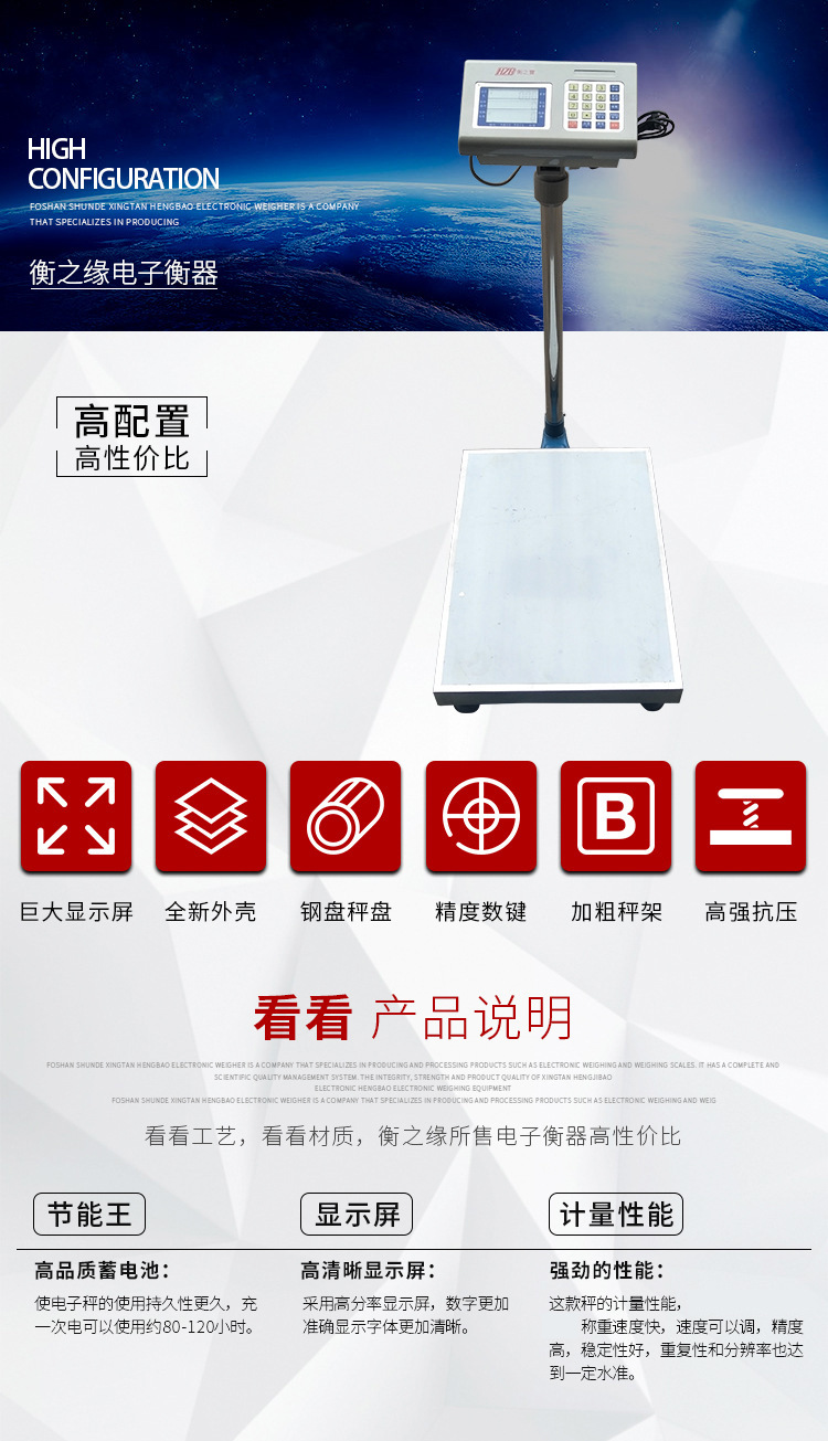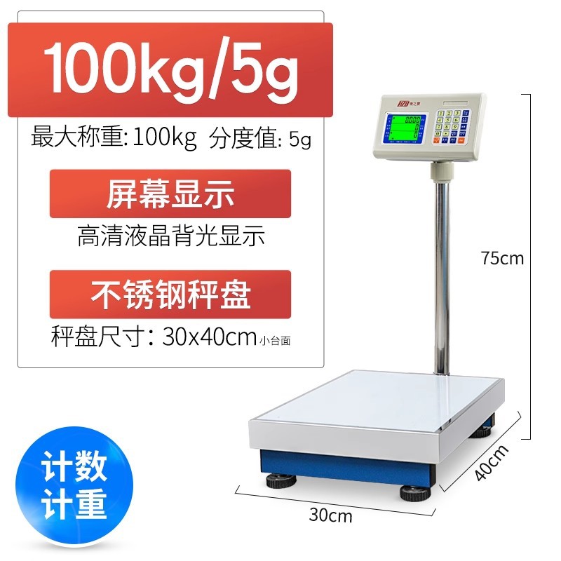 衡之宝电子秤100kg高精度0.01工业台秤计数精准1g磅称300kg落地秤