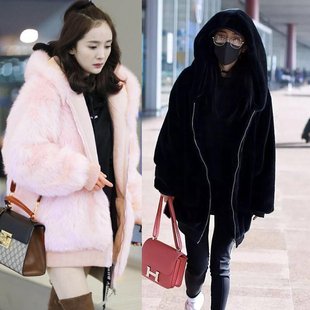 海宁皮草明星同款仿水貂毛皮草大衣中长款连帽毛毛外套【低价批发¥100