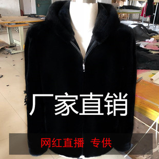 海宁貂绒连帽貂皮大衣男短款青年整貂仿水貂皮草外套皮衣男士冬季¥158