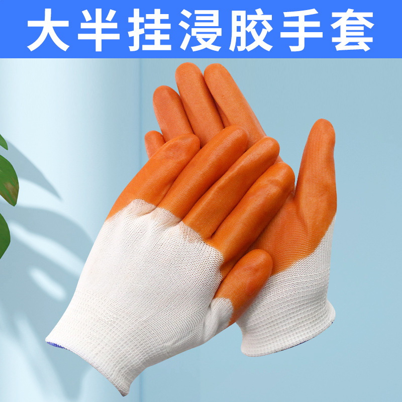 PVC 장갑 반 걸이 풀 행잉 PVC 노란색 고무 장갑 노동 장갑 내유성 침지 보호 장갑 와이어 장갑