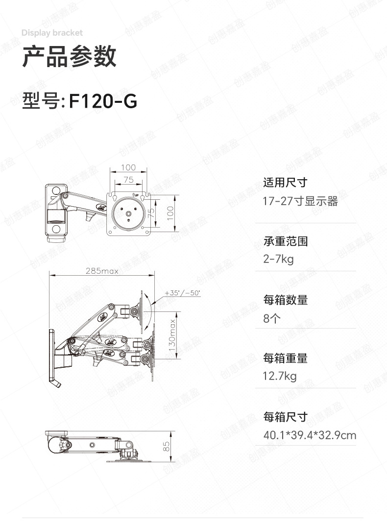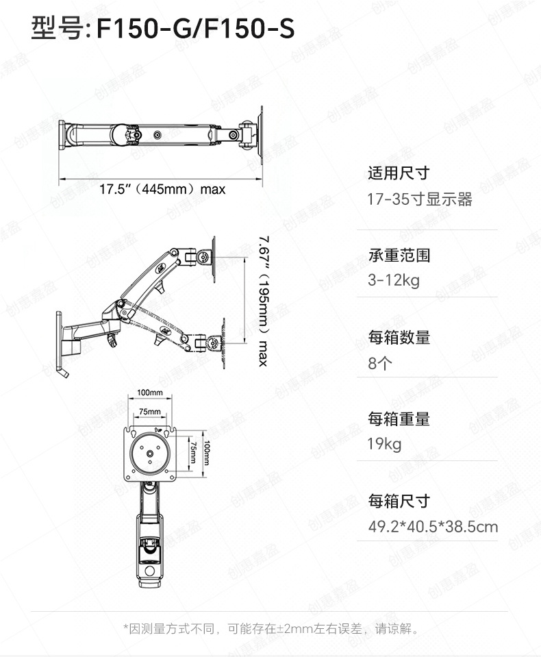 NBF150 모니터 벽 장착 브래킷 벽 망원경 범용 캔틸레버 컴퓨터 디스플레이 브래킷 기계식 암 F120