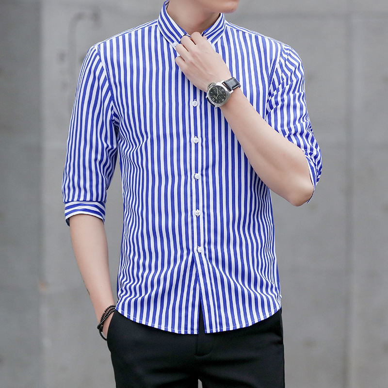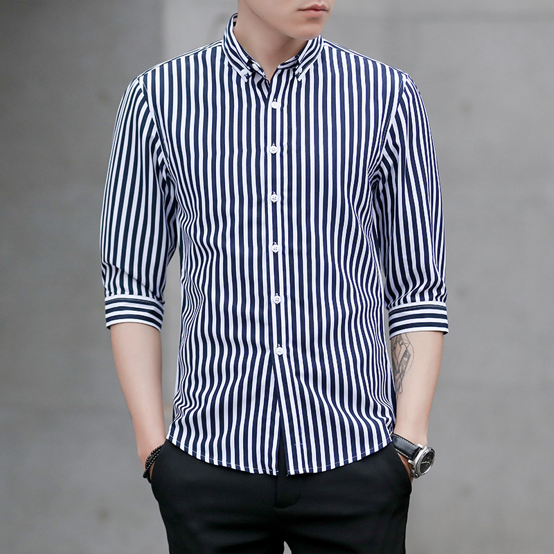 가을 대형 세로 스트라이프 긴팔 셔츠 남자 한국식 유행 잘생긴 셔츠 청소년 사회 정신 소년 셔츠스토어 가기