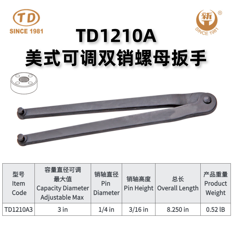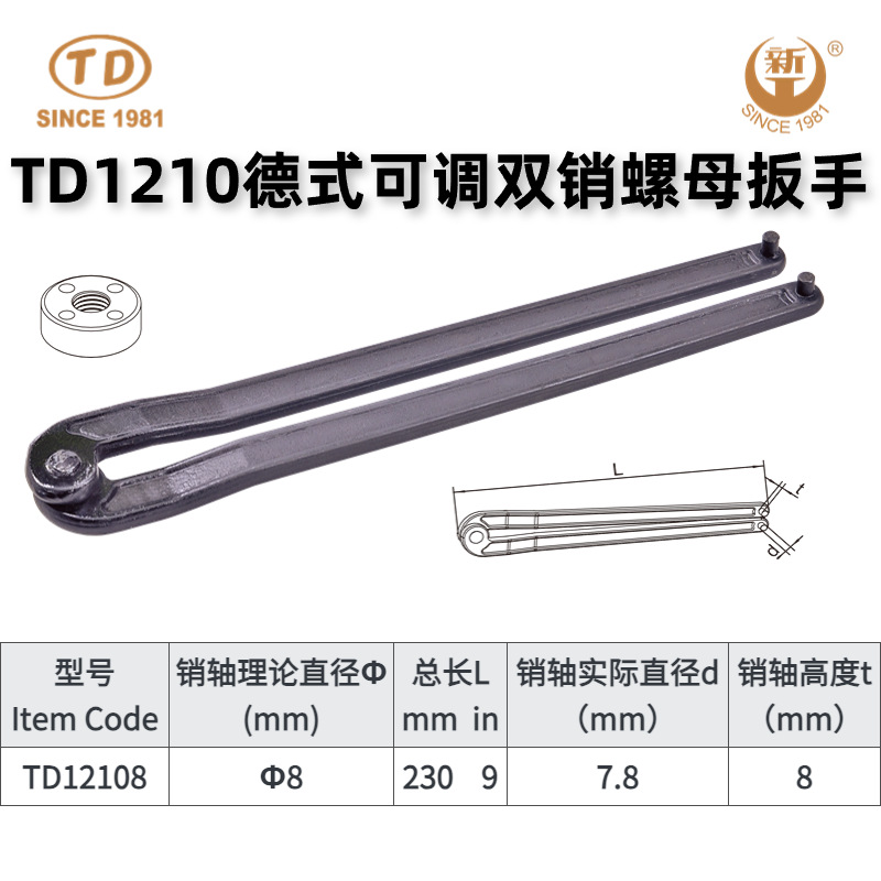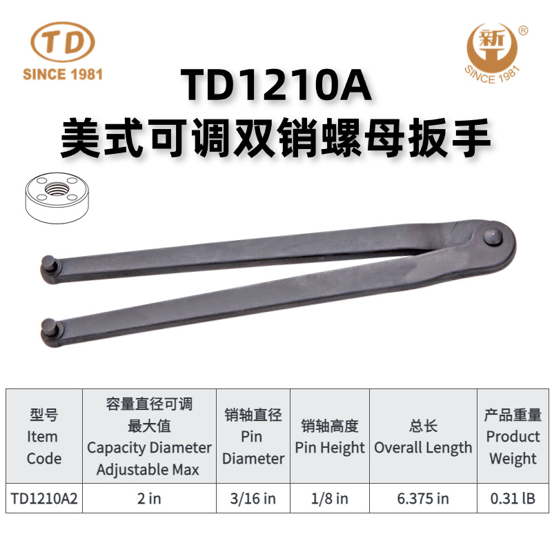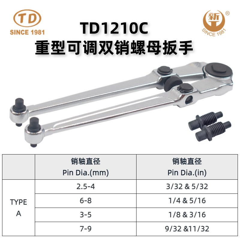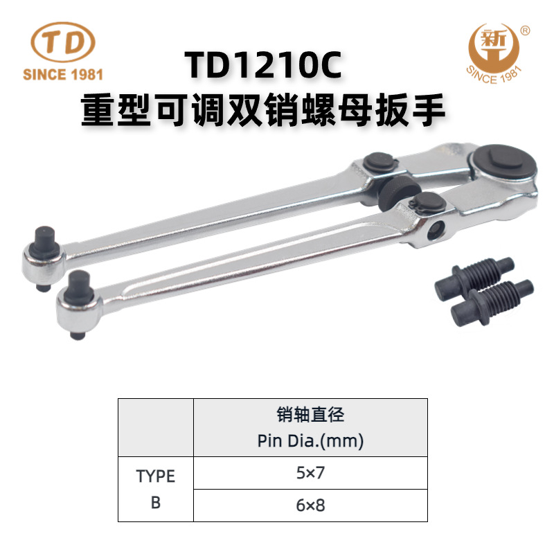 Tianda 신공장 공급 라운드 너트 더블 핀 더블 클로 후크 렌치 조정 가능한 더블 핀 너트 렌치