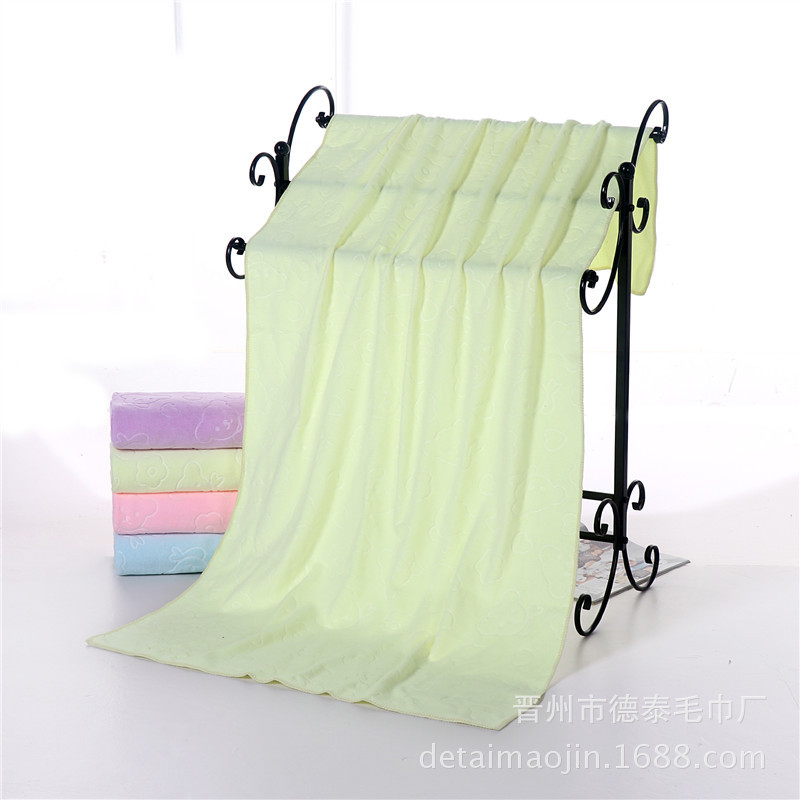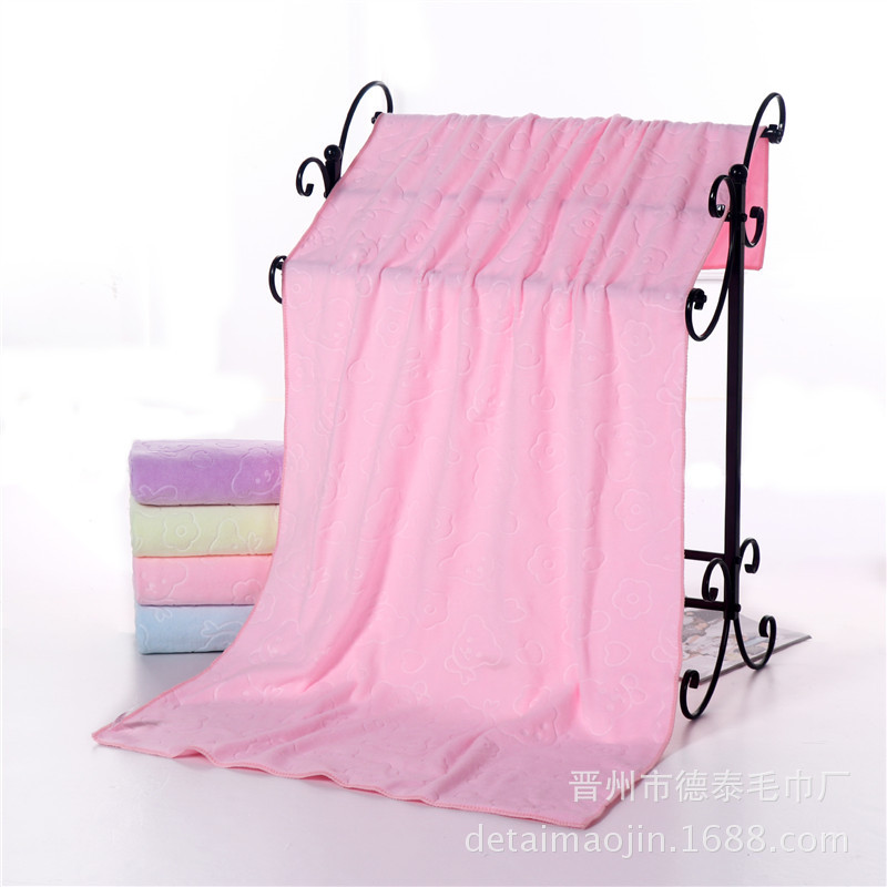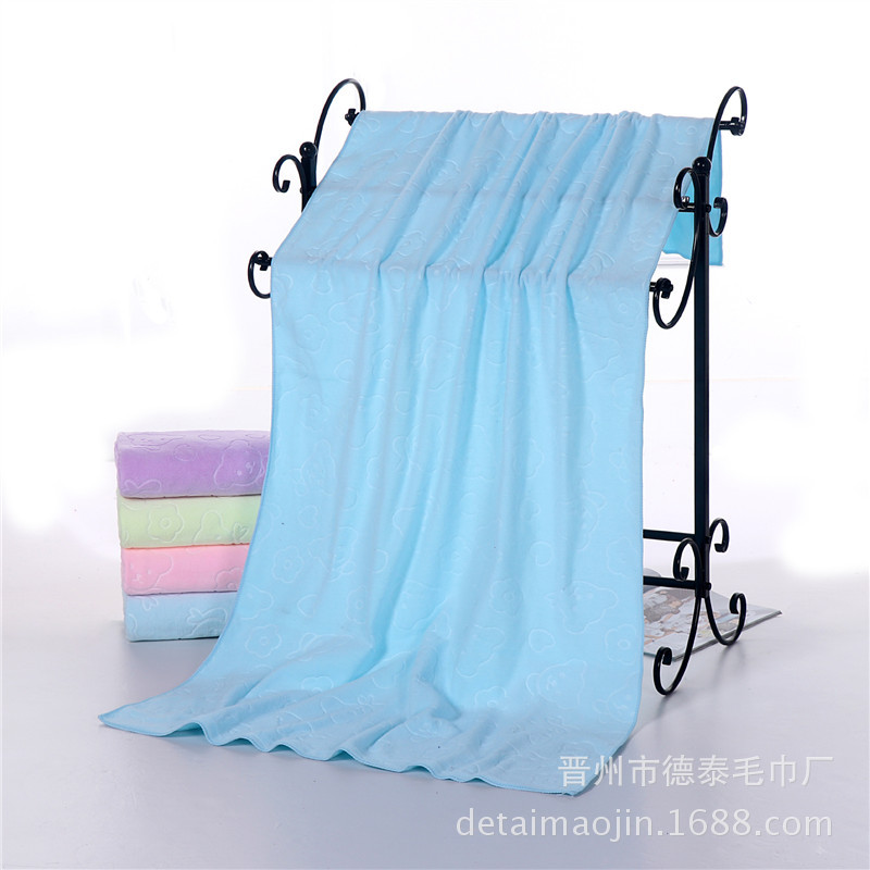 【材质】此款为超细纤维区全涤压花毛巾,200克压花小熊头