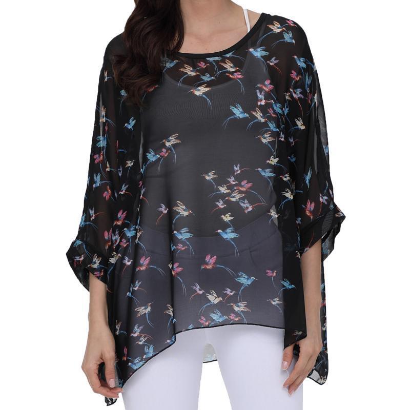 4299 패션 플러스 사이즈 여자의 보헤미안 쉬폰 셔츠 해변 휴가 자외선 차단제 비키니 블라우스