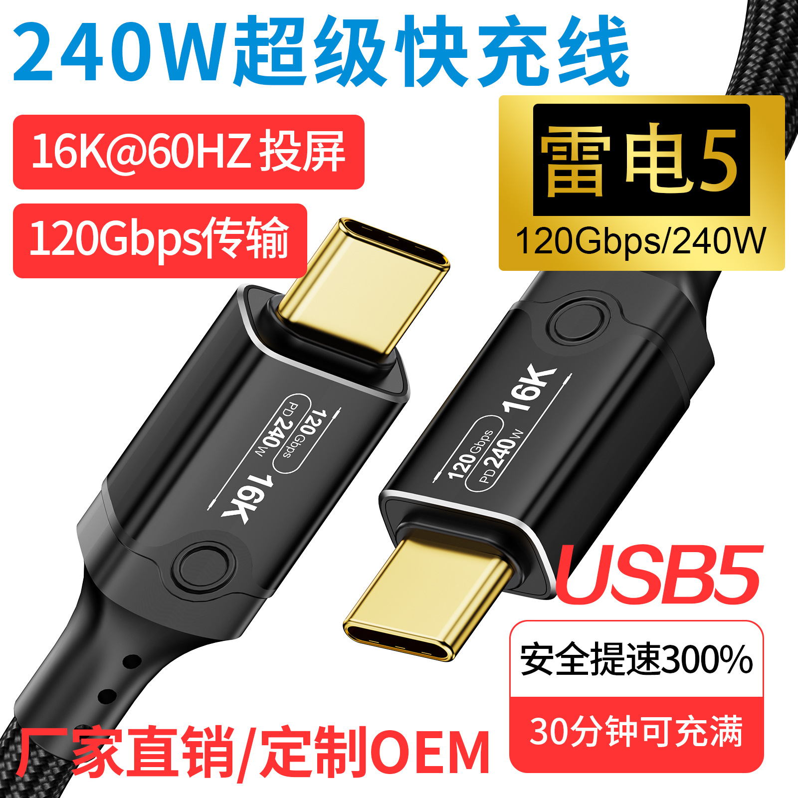 Thunderbolt 5 풀 기능 데이터 케이블 240W USB5 디지털 디스플레이, Thunderbolt 5/4 호환, 16K60HZ 지원, 120G 지원