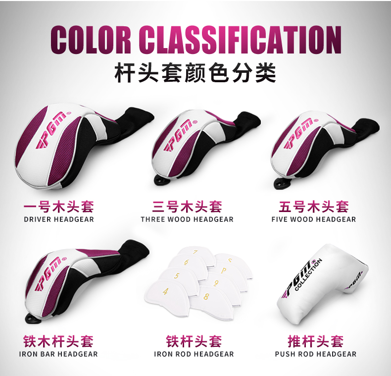 PGM 골프 클럽 커버 2 세대 클럽 커버 나무 막대 커버 철봉 커버 푸쉬로드 커버 숙녀