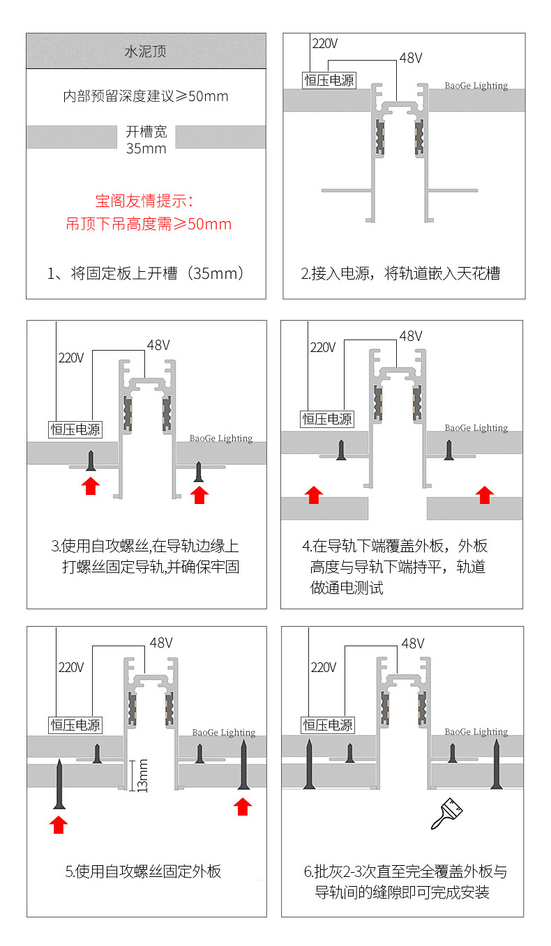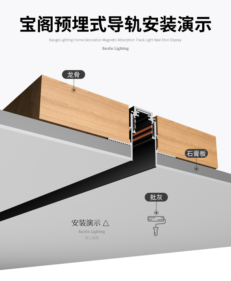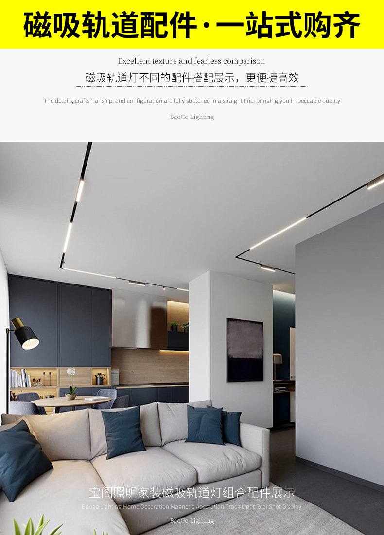 Baoge 자기 램프 자기 트랙은 주 조명 없이 숨겨진 거실 20 사전 내장 임베디드 홈 LED 트랙 조명스토어 가기