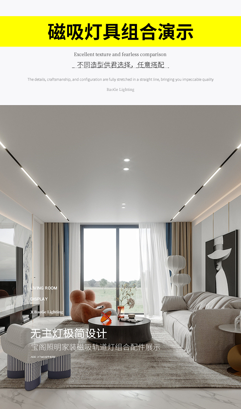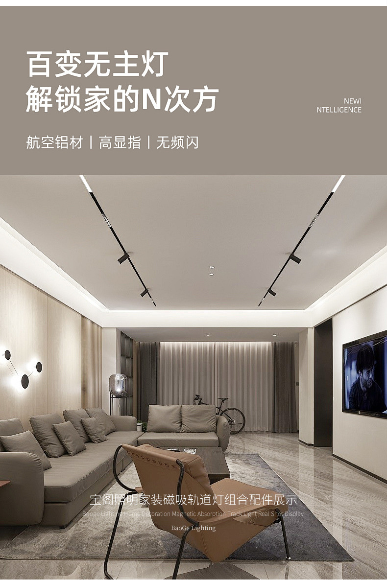 Baoge 자기 램프 자기 트랙은 주 조명 없이 숨겨진 거실 20 사전 내장 임베디드 홈 LED 트랙 조명