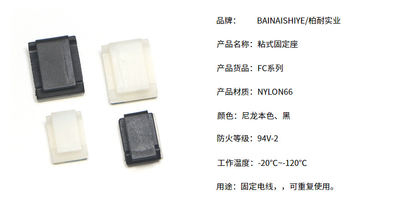 대량 구매 시 할인, 접착식 전선 고정대 FC-1/2, 나일론 3M 전선 클립, 흑백, 공장 직판, 무타공