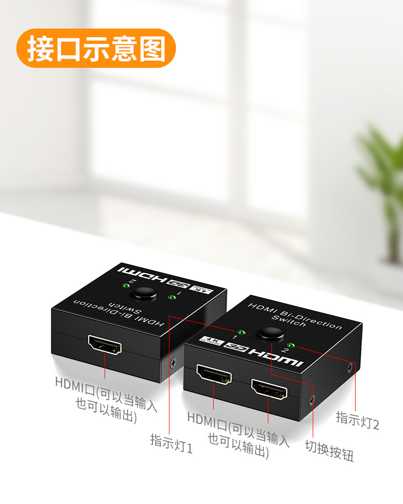 국경 간 HDMI 스위치 2-in-1-out 4kHDMI 고화질 컴퓨터 오디오 및 비디오 양방향 변환 화면 분배기