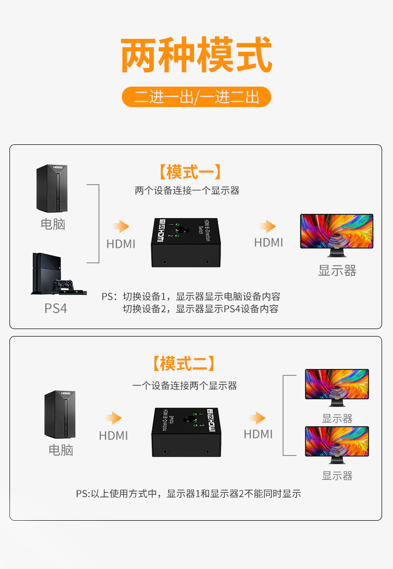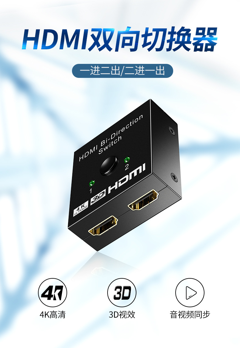 국경 간 HDMI 스위치 2-in-1-out 4kHDMI 고화질 컴퓨터 오디오 및 비디오 양방향 변환 화면 분배기스토어 가기