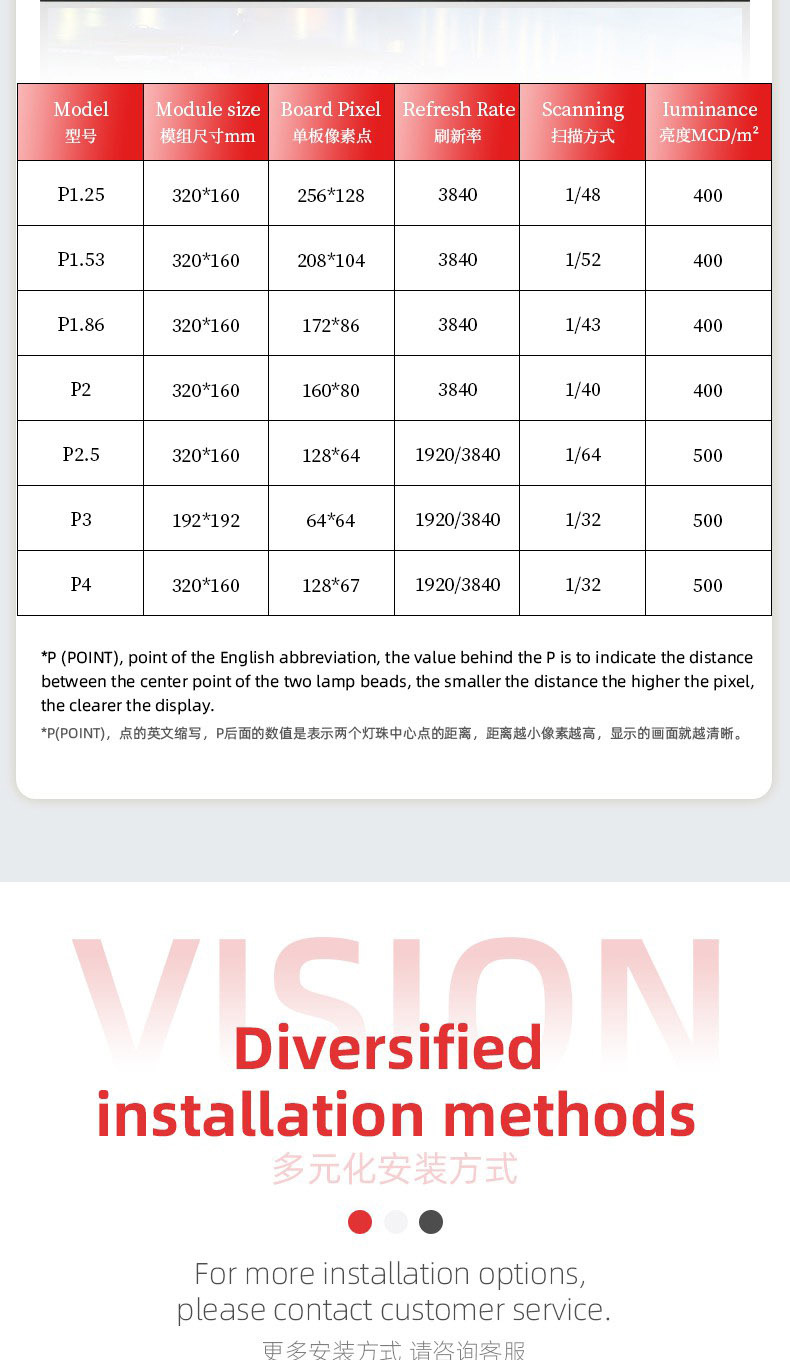 • 작은 피치 P1.66 모듈 사용자 정의