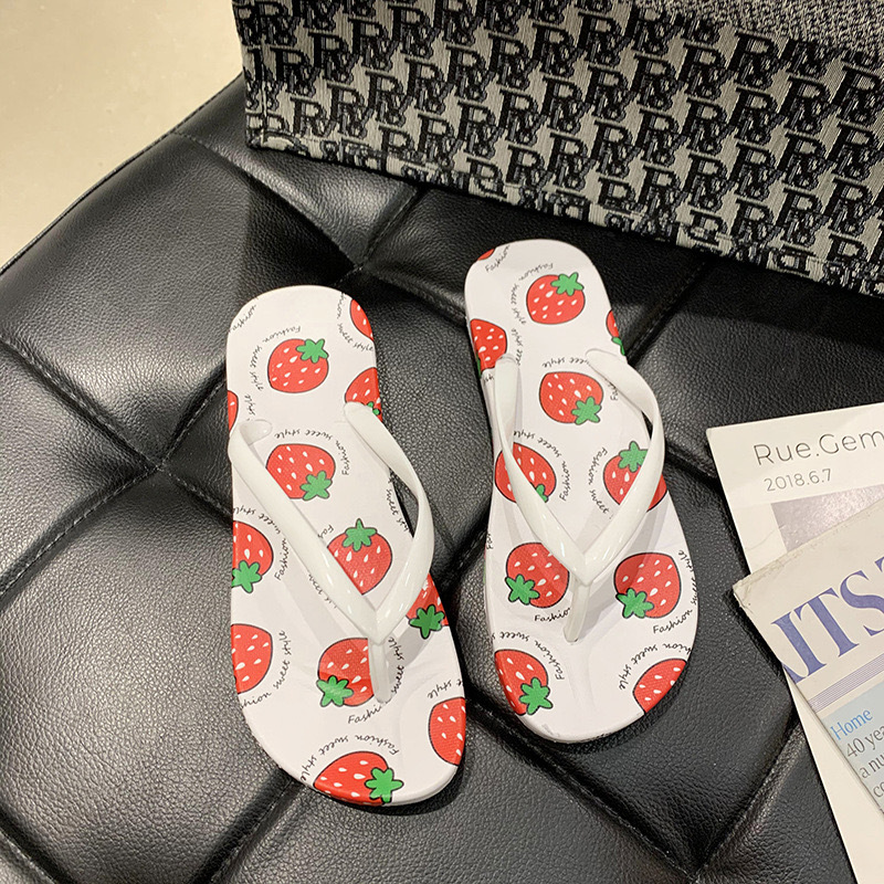 2023 새로운 여름 과일 딸기 플립 플롭 소녀 분말 부드러운 바닥 미끄럼 방지 욕실 학생 비치 슬리퍼 여성