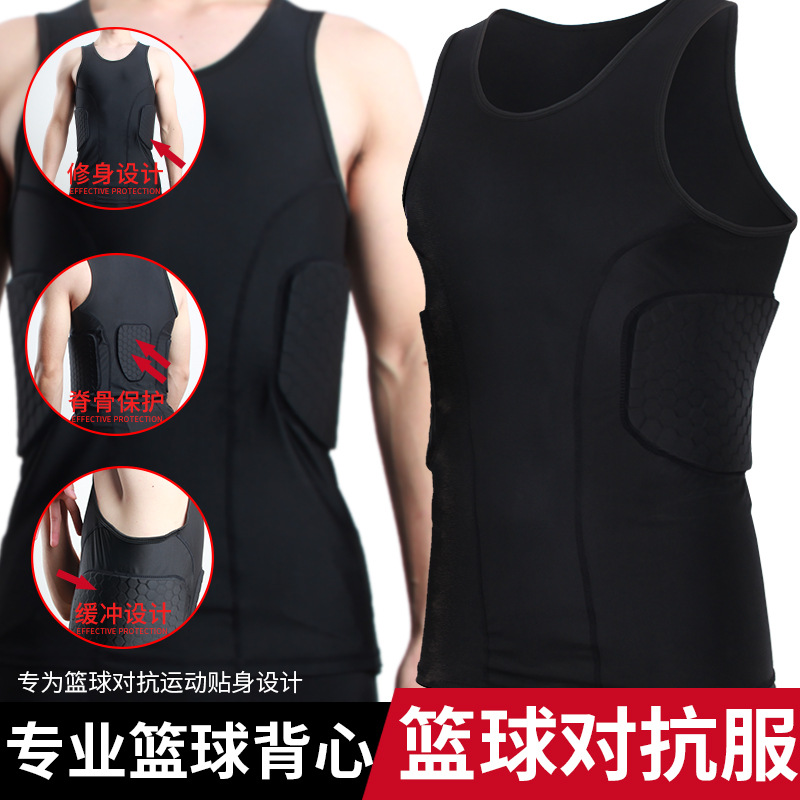 • 批发跨境防撞服背心防摔足球紧身运动护具无袖护肩护腰球衣篮球服