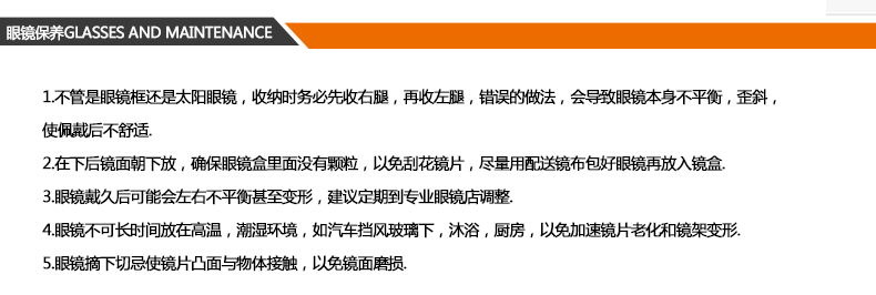 2、取戴时一般先折左镜腿,不易造成镜框变形。