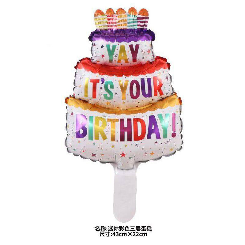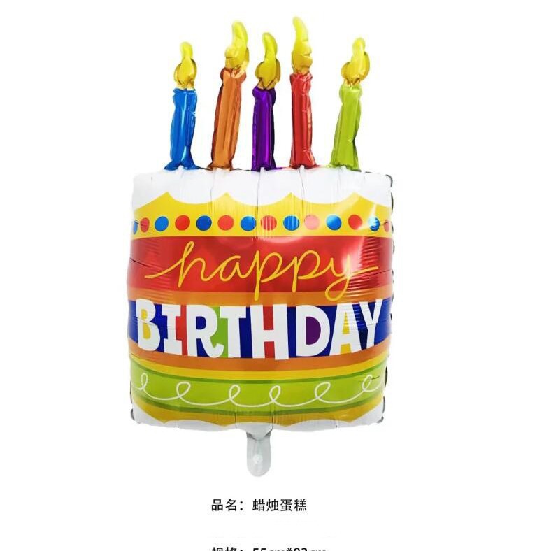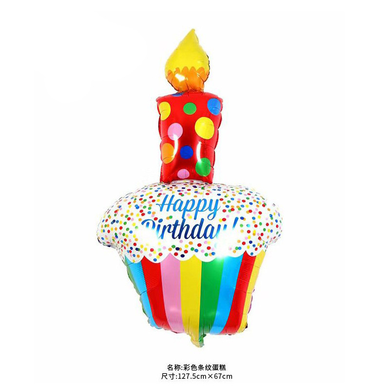새로운 컬러 3 층 케이크 알루미늄 필름 풍선 촛불 줄무늬 케이크 영어 생일 케이크 장식 풍선