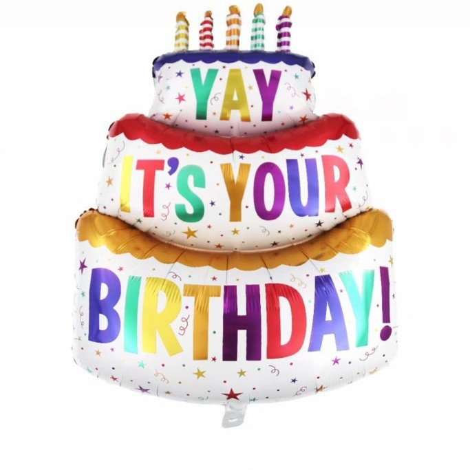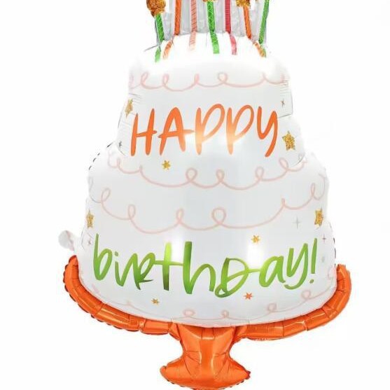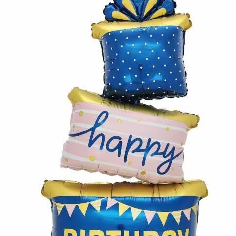 새로운 컬러 3 층 케이크 알루미늄 필름 풍선 촛불 줄무늬 케이크 영어 생일 케이크 장식 풍선스토어 가기