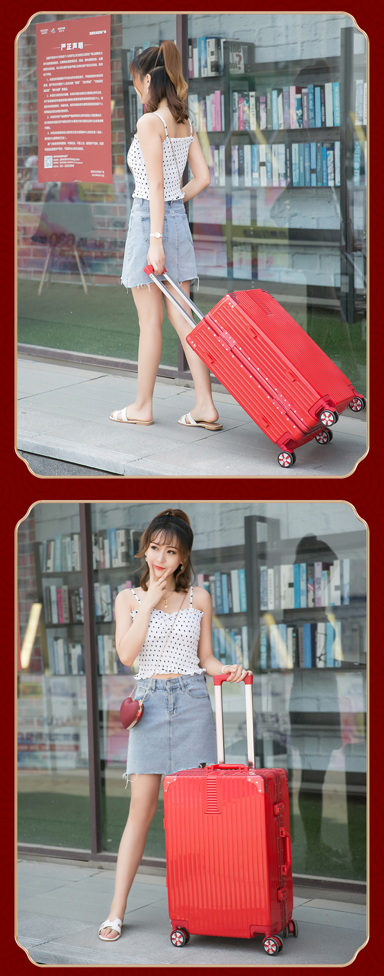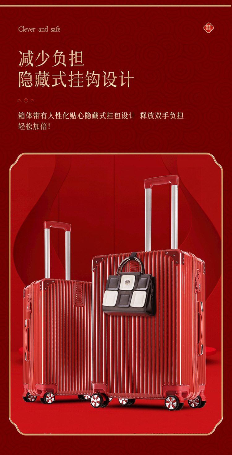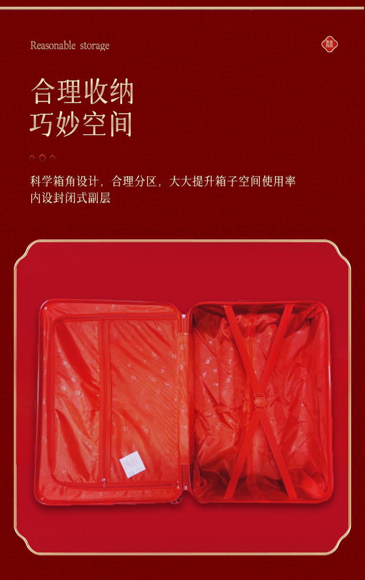 레드 20 인치 수하물 신부 Dowry 웨딩 트롤리 박스 웨딩 코드 가방 동반 수하물