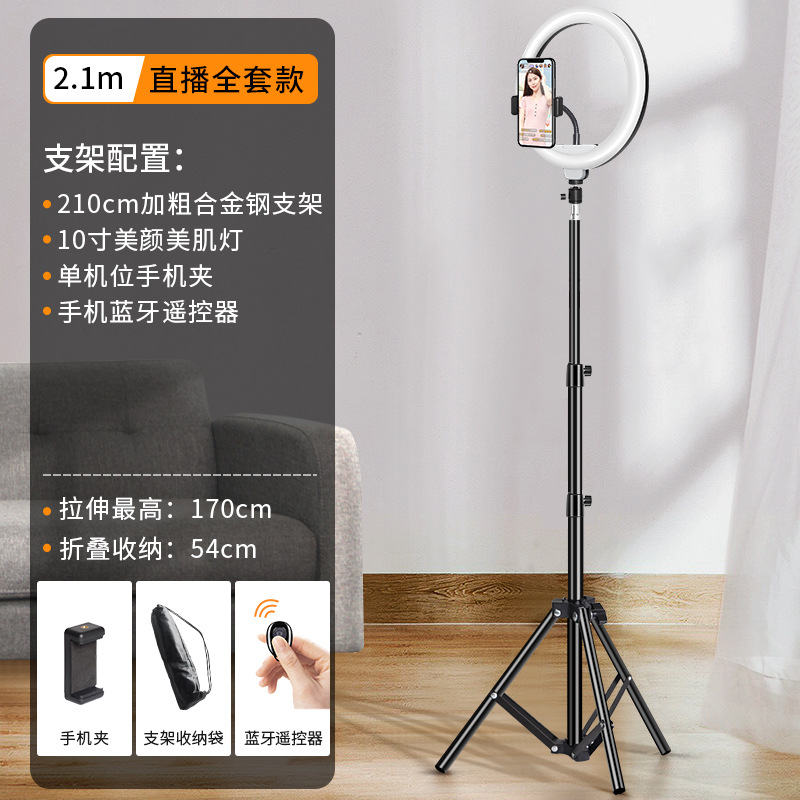 • 2.1 m [두꺼운 합금 브래킷] 단일 위치 + 보관 가방 + 10 인치 램프 + 셀카