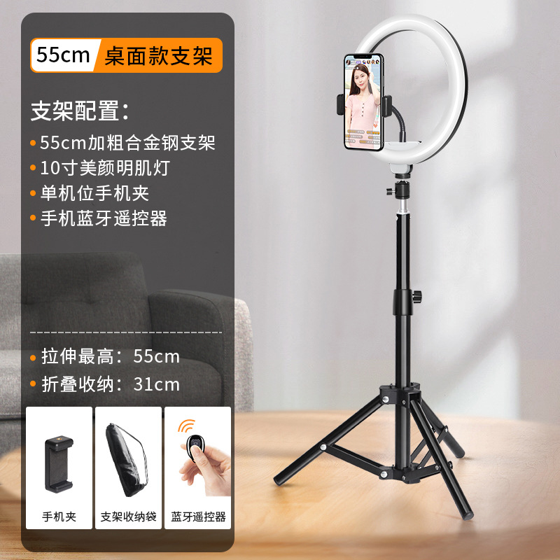 휴대 전화 라이브 삼각대 데스크탑 플로어 스탠드 라이트 필 라이트 떨림 블루투스 셀프 타이머 비디오 텔레스코픽 아티팩트