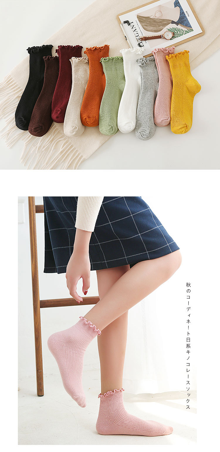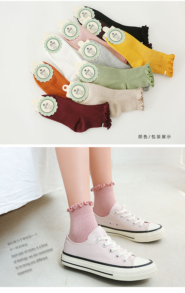 봄과 가을 새로운 여성 양말 일본 곰팡이 레이스 짧은 튜브 면 양말 10 색 면 여성 부츠 보트 양말 도매