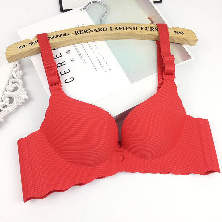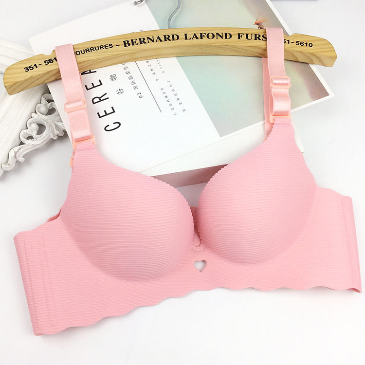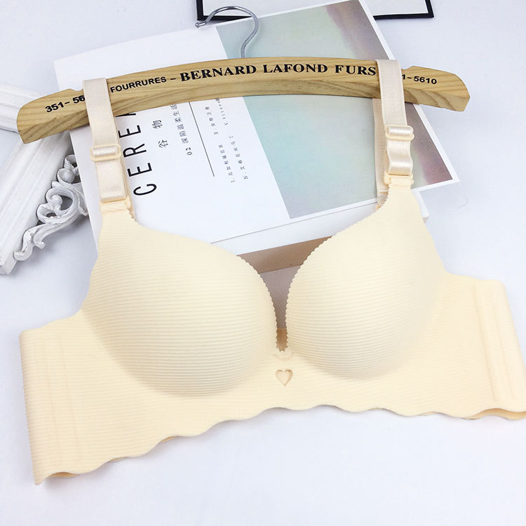 심리스 브라 새로운 폭발 원피스 심리스 속옷 중형 두꺼운 손바닥 컵 작은 컵 수집 비자성 브라스토어 가기