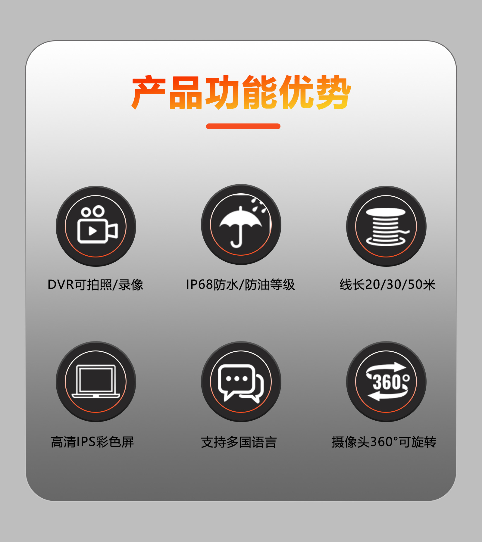 공장 직접 7D1 20m HD 파이프 라인 내시경 카메라 산업용 수중 탐지기 모니터스토어 가기