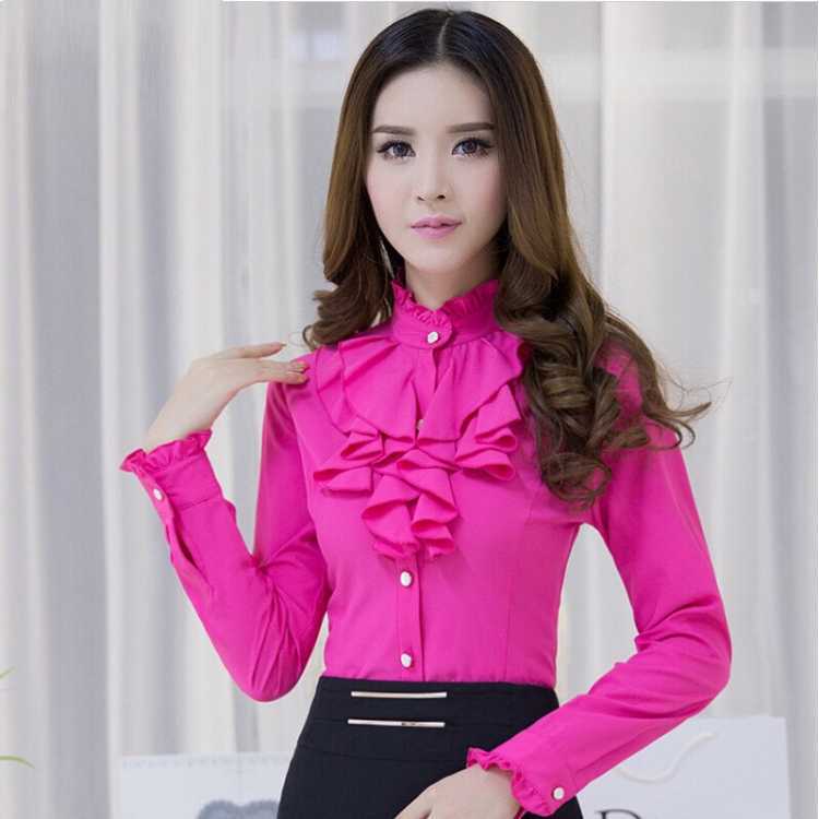 봄과 가을 한국 스타일 로터스 리프 레이스 셔츠 여성용 슬림 핏 OL베이스 셔츠 화이트 쉬폰 셔츠스토어 가기